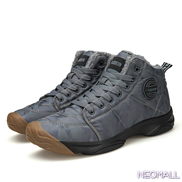 メンズ スノーシューズ 【864】 27.5cm 迷彩グレー ムートンブーツ スニーカー ウィンターブーツ 裏起毛 防水 防寒 防滑 冬用靴 綿靴
