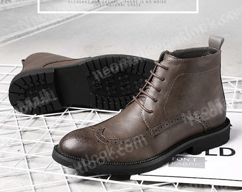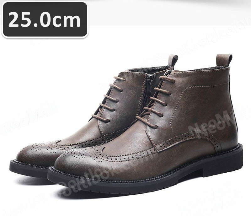 サイドジッパー付 PUレザー メンズ シュートブーツ ブラウン サイズ 25.0cm カジュアル 屈曲性 通勤 軽量 インポート品【n029】