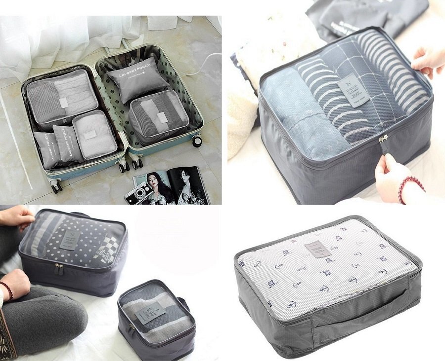 | 軽量 大容量 トラベルポーチ 6点セット グレー |