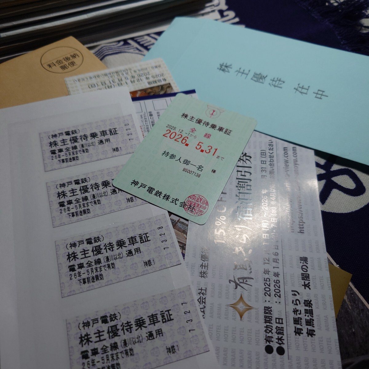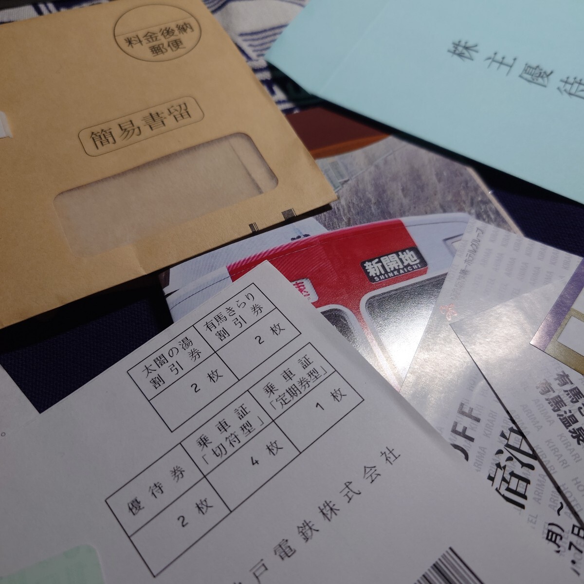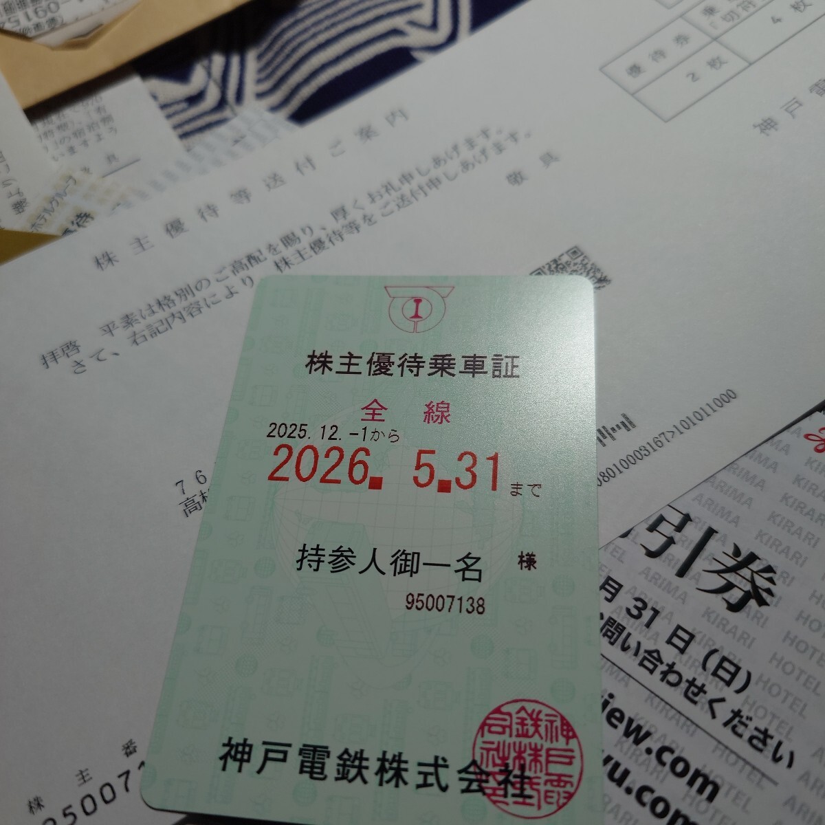 神戸電鉄9月現物1000株の権利、株主優待全部セット!来年5月末まで神戸電鉄乗り放題!切符も4枚!温泉の優待も全部付けます!お得!匿名配送、送料込みだよ!お気軽に!