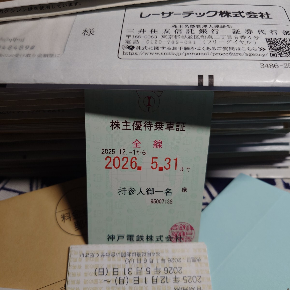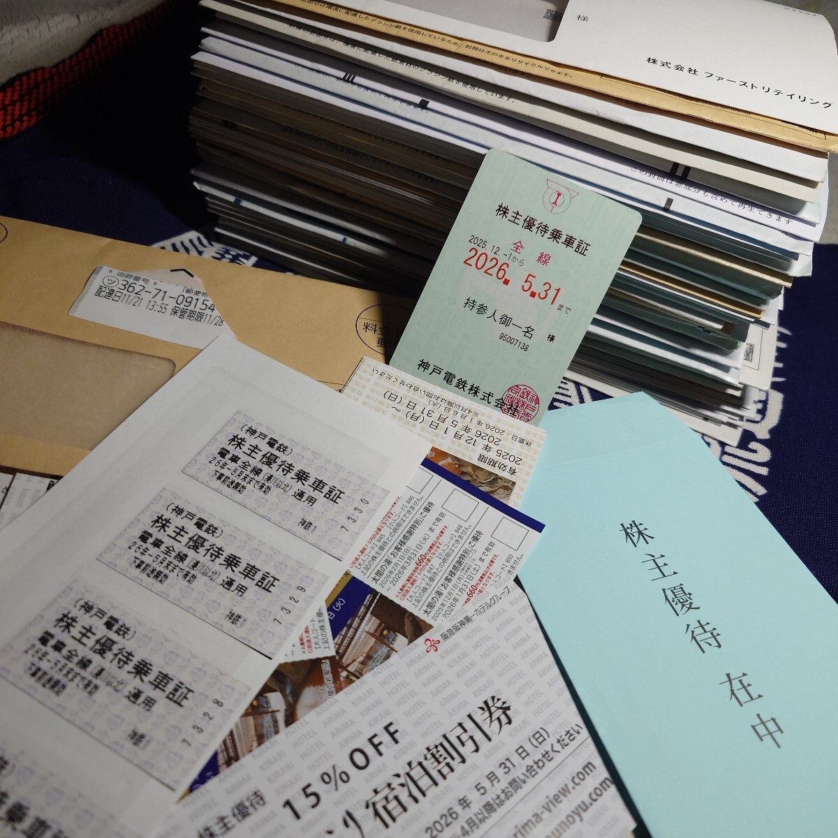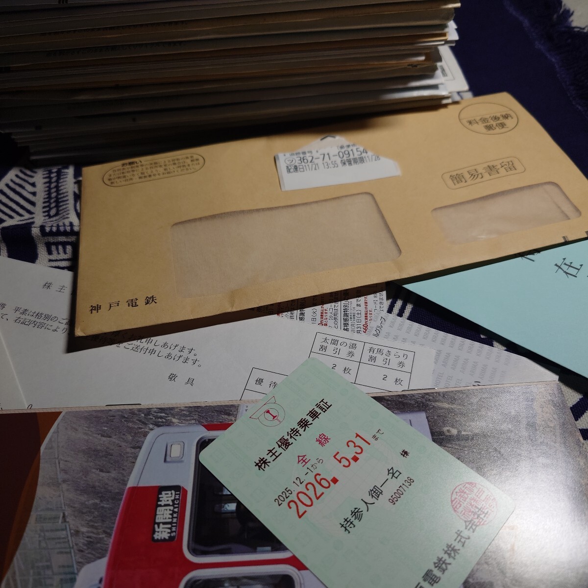 神戸電鉄9月現物1000株の権利、株主優待全部セット!来年5月末まで神戸電鉄乗り放題!切符も4枚!温泉の優待も全部付けます!お得!匿名配送、送料込みだよ!お気軽に!