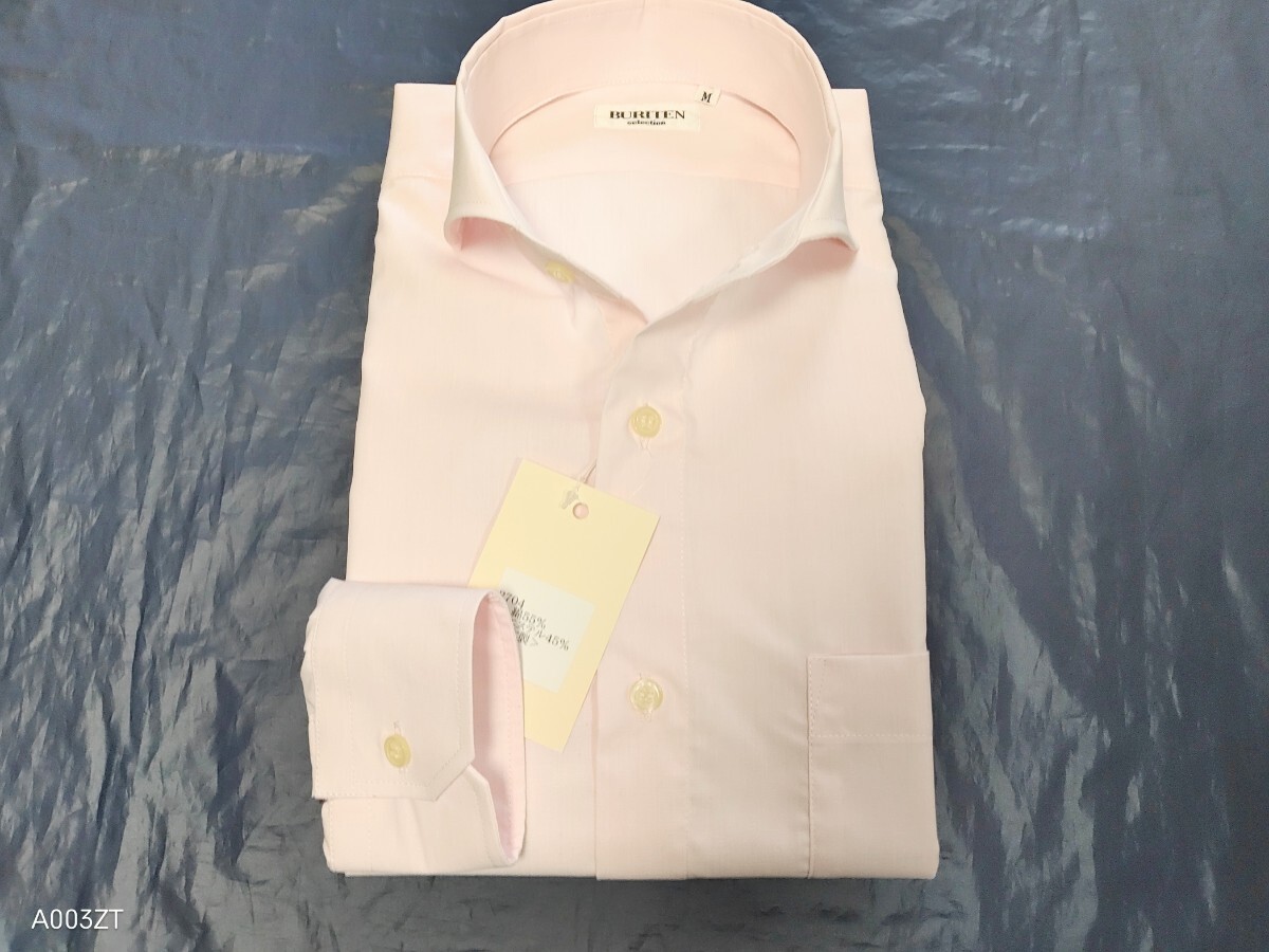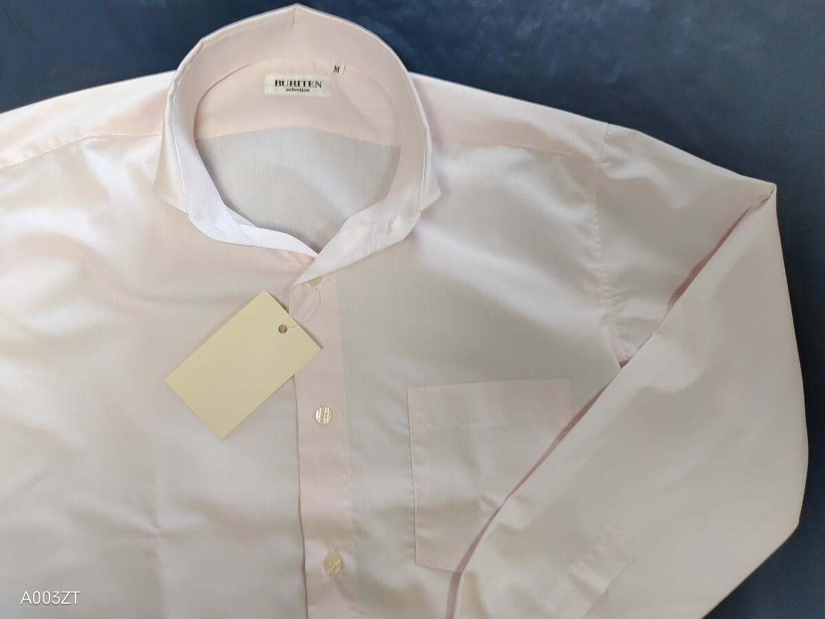 きれいなライトピンク色のホリゾンタルカラーシャツです