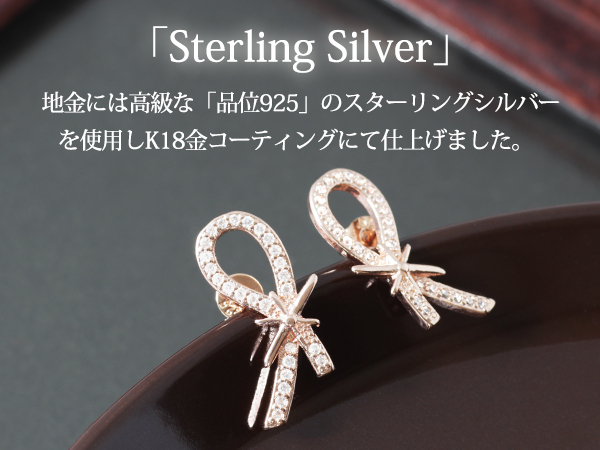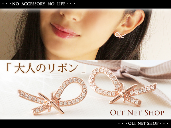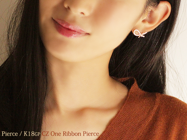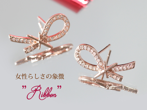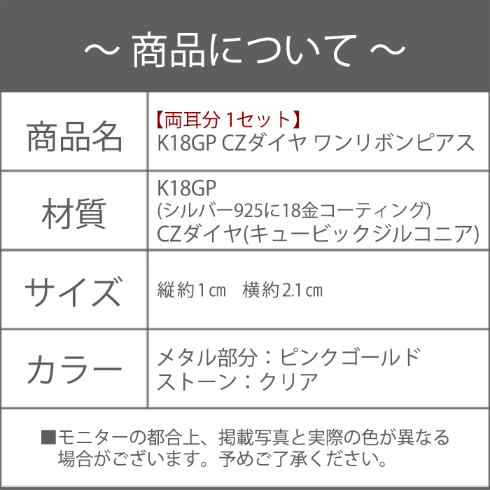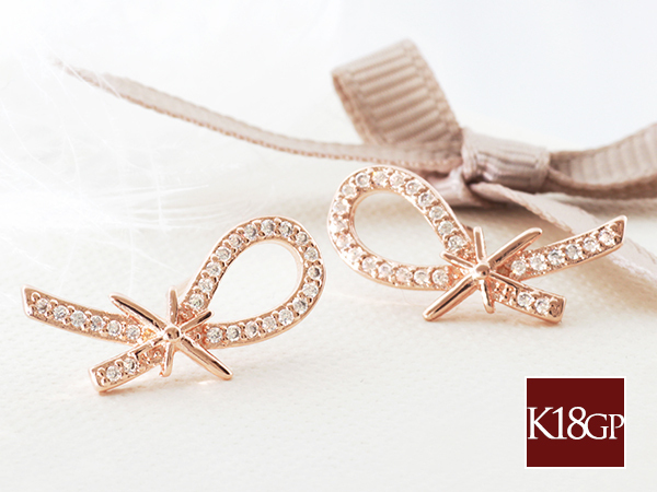 新品/ピアス/K18GP/リボン/ダイヤ/レディース/シンプル/18金/ピンクゴールド/両耳/スタッド/地金 シルバー 925/上品/女性/CZ/PG