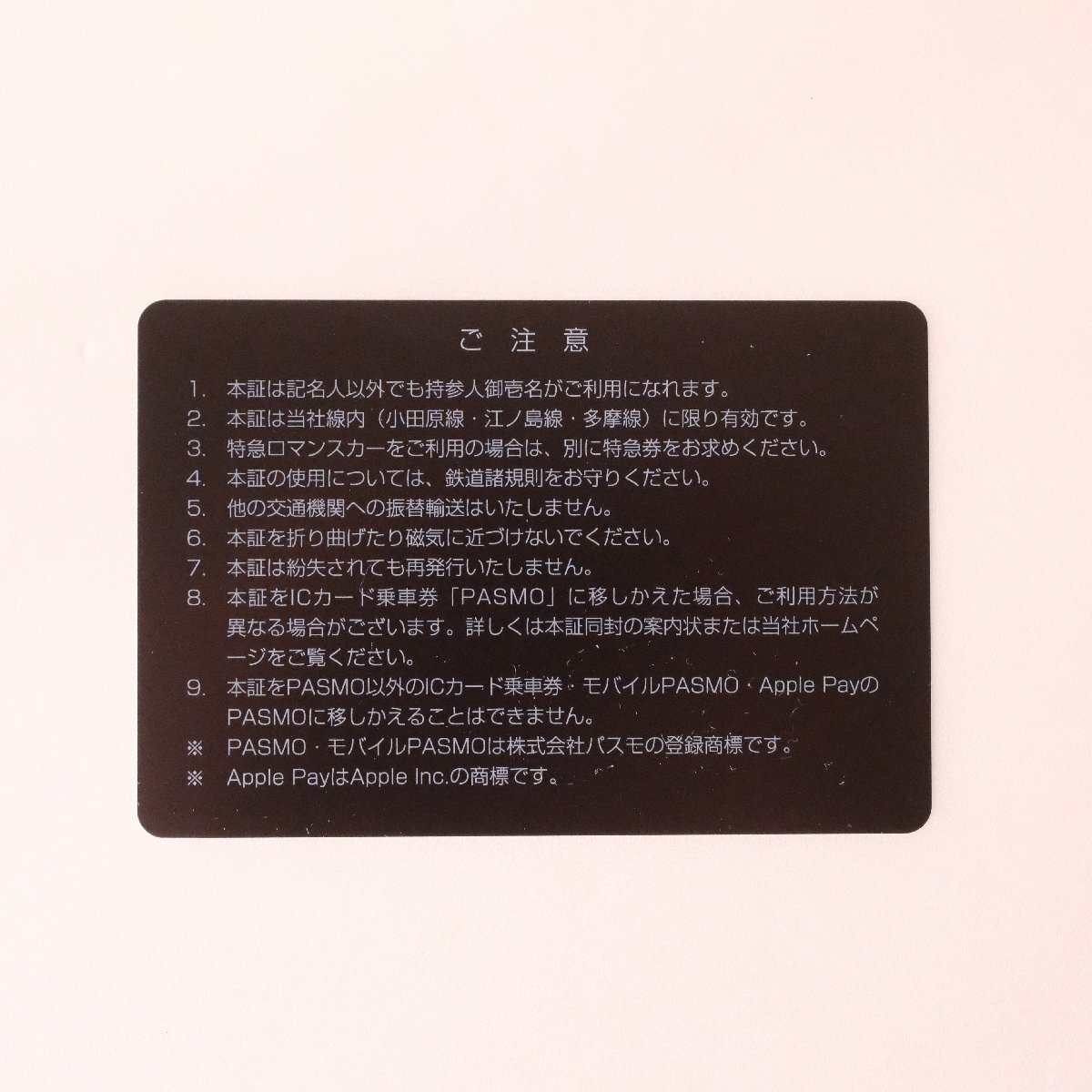 小田急電鉄の株主優待乗車証(定期タイプ)です。