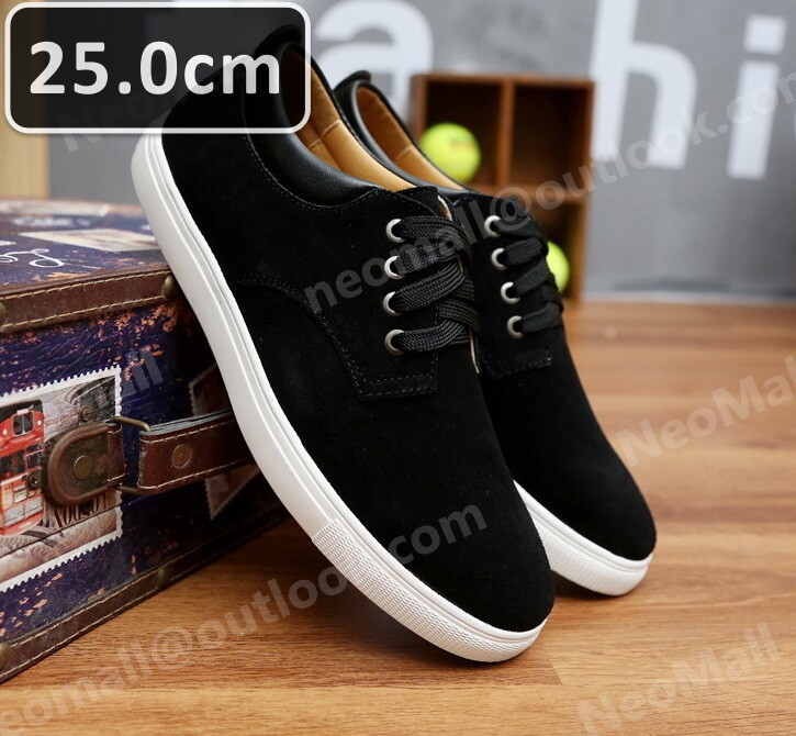 メンズ カジュアル スニーカー ブラック サイズ 25.0cm 革靴 靴 カジュアル 屈曲性 通勤 軽量 インポート品【n040】