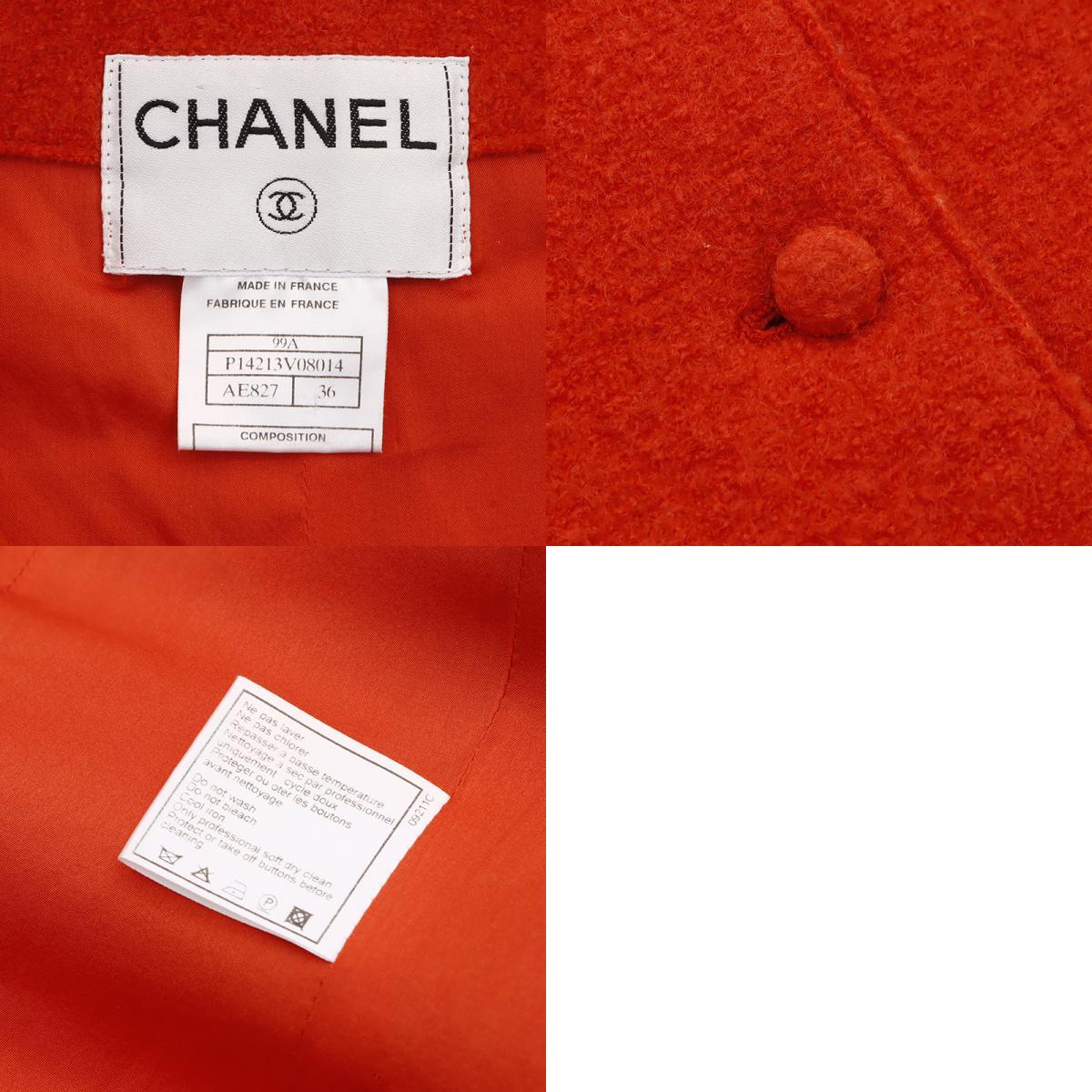 極美品 シャネル CHANEL ウール ノーカラー シングル 99A 1999年 ジャケット オレンジ WS6081