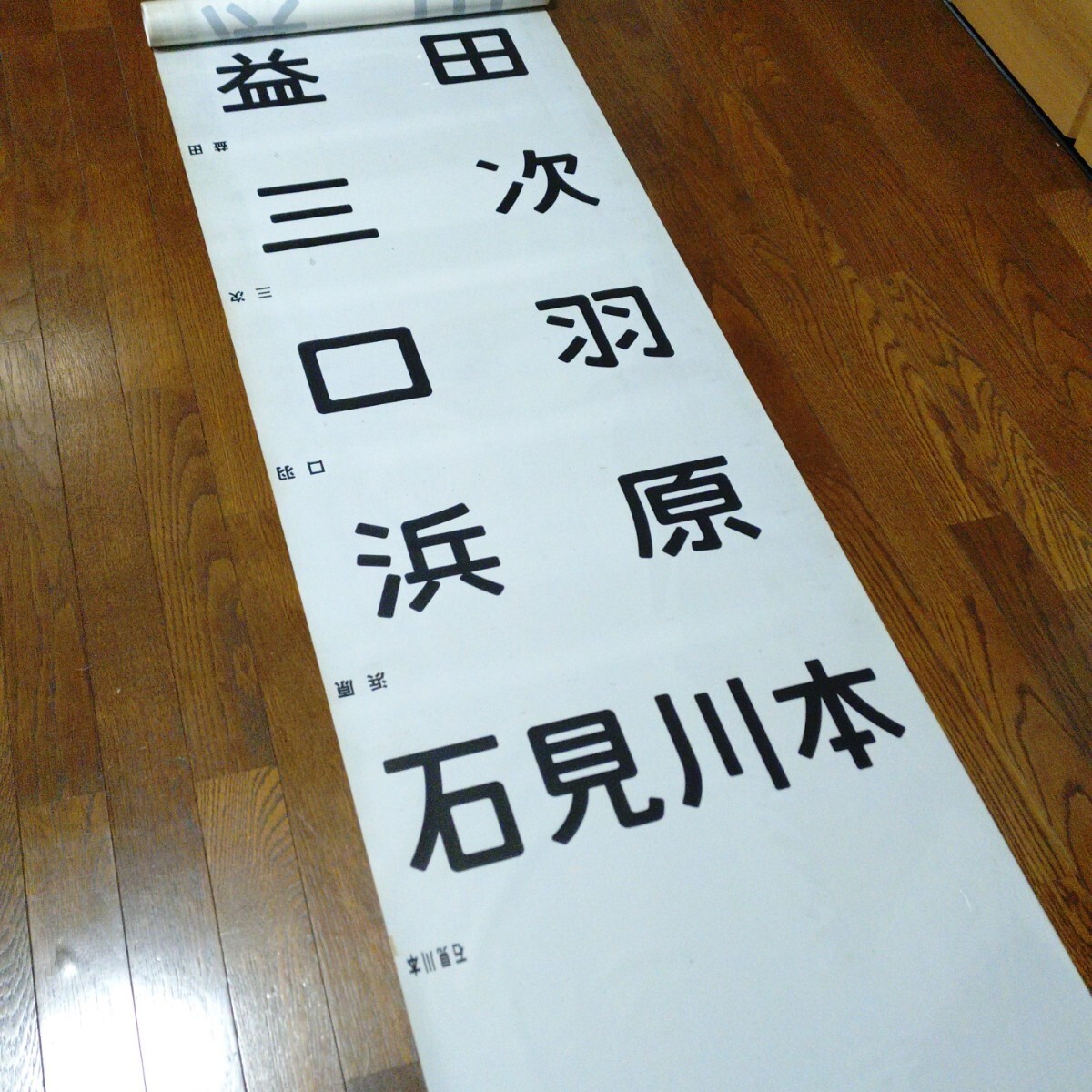 廃線三江線に使用されていたキハ120形前面方向幕初期タイプです。汚れがありますが破れ補修はありません。