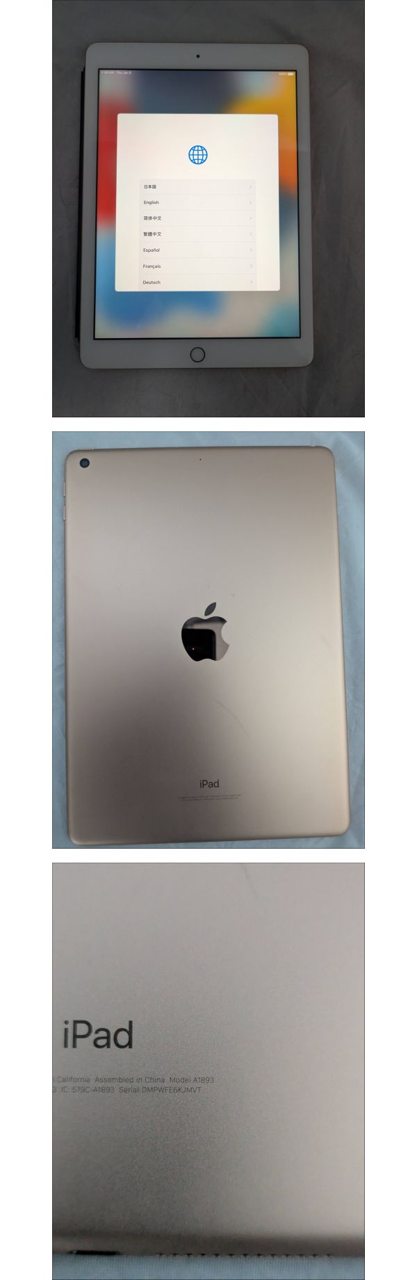 | 商品説明 | 【商品について】 ご覧いただきありがとうございます。 この度出品いたしますのは「 ●Apple iPad 第6世代 Wi-Fi 32GB A1893● 」でございます。 中古品ではございますが、ご活用いただける方にお譲りできれば幸いです。 商品の状態、付属品、寸法等につきましては、掲載写真にてご確認をお願いいたします。 補足:当方、ペットの飼育および喫煙の習慣はございません。お気にされる方はご参考ください。