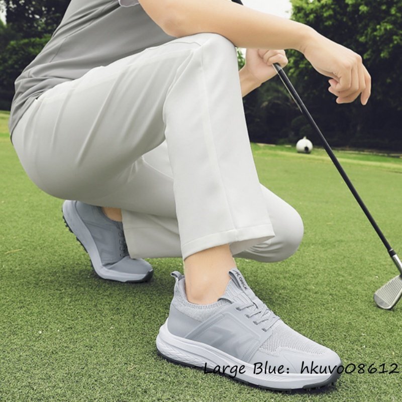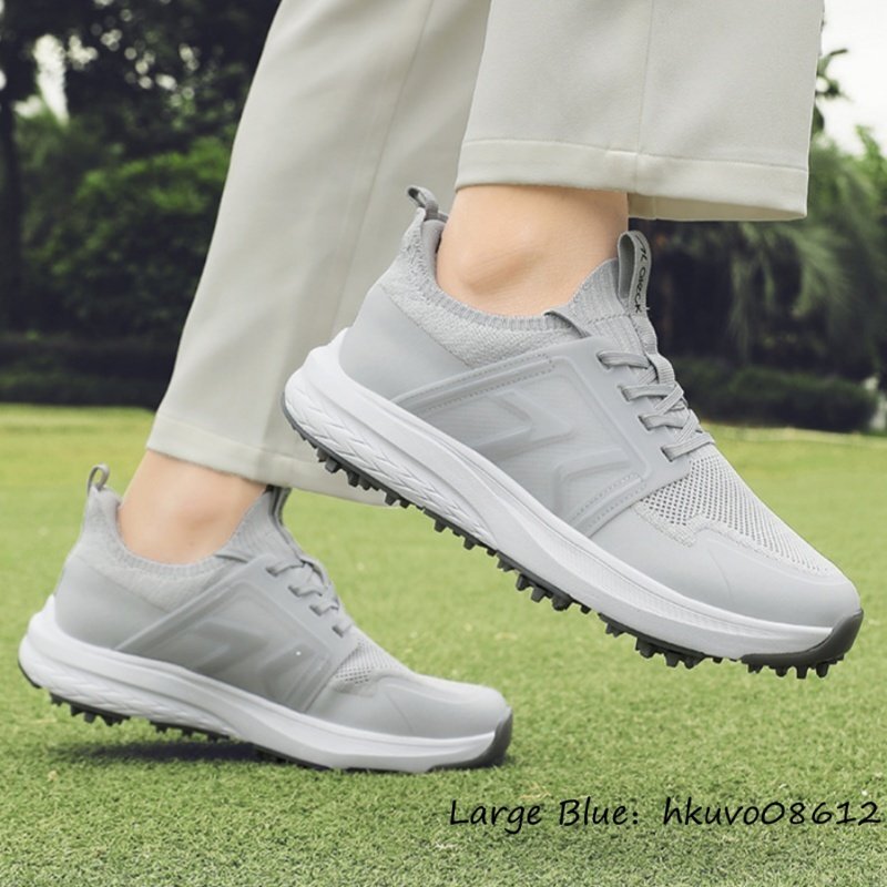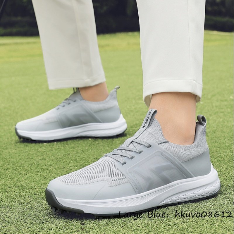 新品特売★ゴルフシューズ メンズ 強いグリップ スニーカー 滑り止め 軽量 耐磨耗性 通気性 快適 アウトドア 運動靴 紳士 グレー 24.5cm