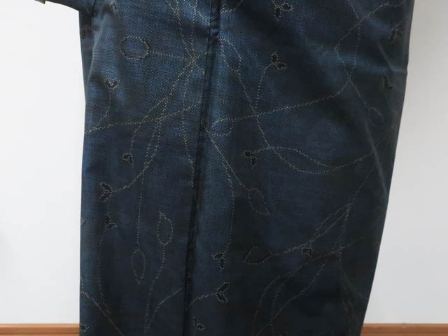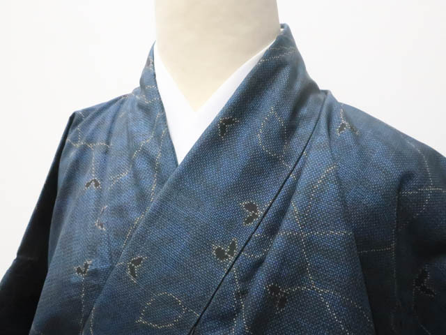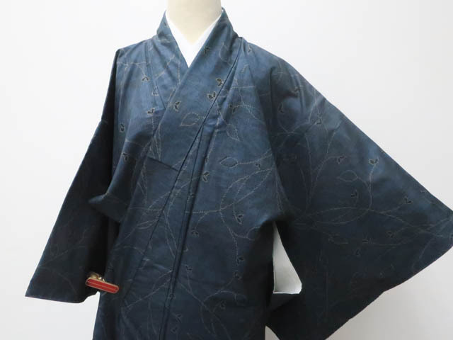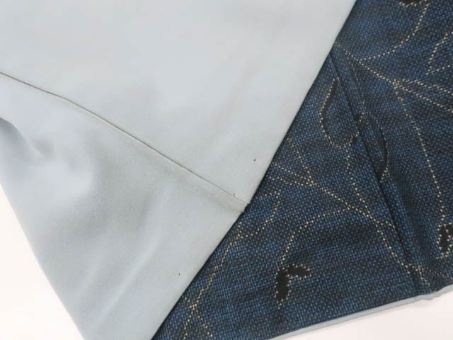 リサイクル商品のため、羽田掛け裾・衿・袖口に汚れがございますが着用可能なお品です。 地色は 紺です。 1枚目の画像が近いお色かと思われます。 素材は正絹です。 |