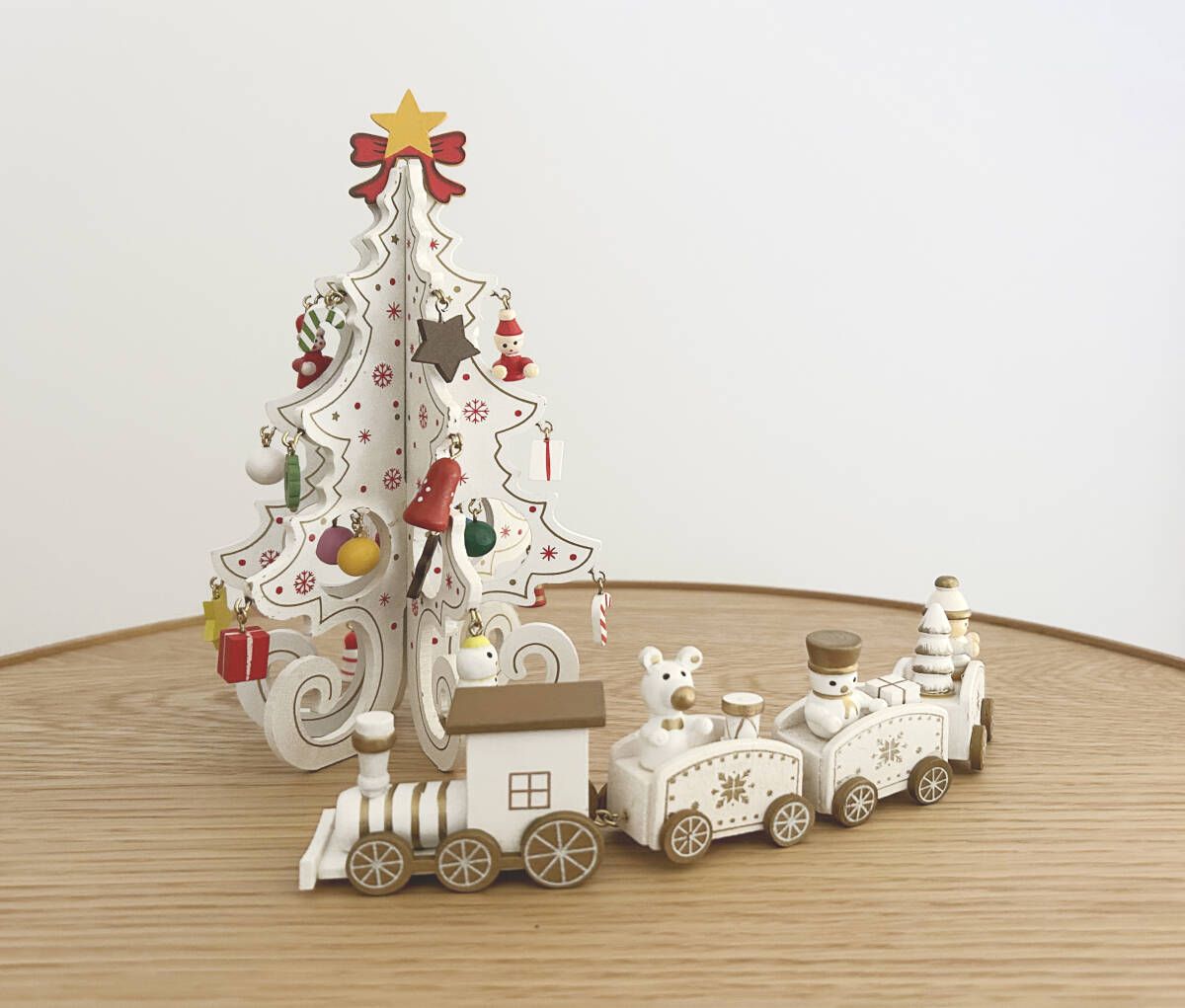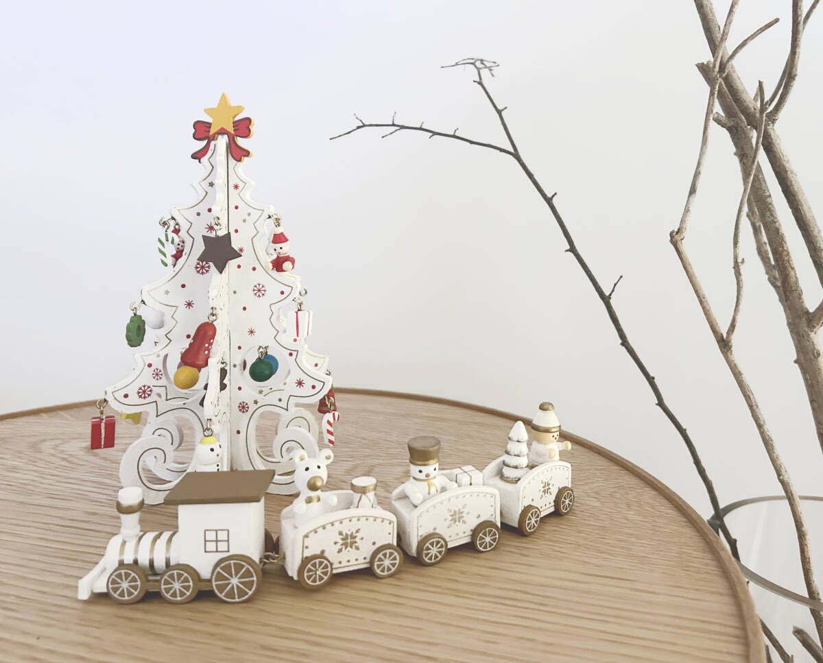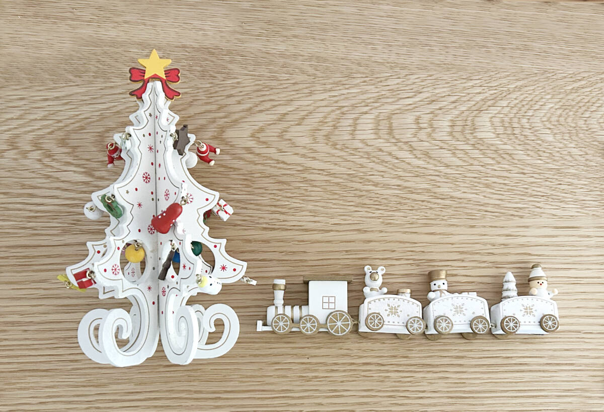 【未使用】2点セット「ホワイト+ホワイト」フラットツリー+トレインオブジェ