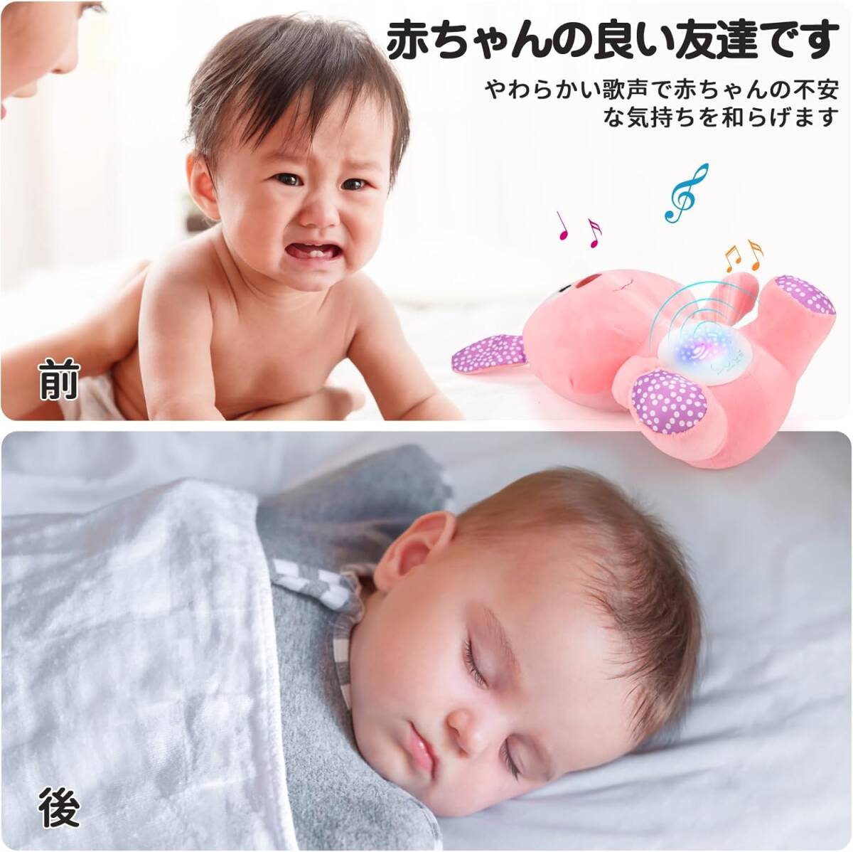 | 【柔らかくてかわいいデザイン】見た目も可愛らしく、表面のさわり心地がマイクロファージのように目が細かく、肌触りがよく、触りたくなる材質です。柔らかく、抱き心地もよいです。お腹のボタンによって、ホワイトノイズ、環境音、子守唄などが奏でられるようになっています。日本の調律師が手掛けで赤ちゃんの寝かしつけに最適な周波数を作ったリラックスヒーリングサウンドの13曲です。音楽は可愛らしいオルゴール風。 【プラネタリウムプロジエクター】美しい星空が天井や壁に映し出され、柔らかな光が子供たちの暗闇への恐怖を和らげます。 種類の夢のような星空のライトが絶え間なく循環し、子供たちに夢のような眠りの雰囲気を提供します。 【オートオフ&音量調節可能】照明と音楽は30分の作業後に自動的にオフになるので、手動でオフにすることで赤ちゃんの睡眠が妨げられることを心配する必要はありません。調整可能なボリュームデザインにより、環境の変化に応じて適切なボリュームを選択できます。音量は耳元に近づけたらよくわかる感じでささやかな音量に変えられるので寝かしつけに良いです。 【お手入れと持ち運びが簡単】安全なぬいぐるみ生地とABS素材で作られています。触った感触も気持ち良くって、可愛かったです。ぬいぐるみは洗えます。洗濯機または手洗いができます。電池は別売りで腹部の楕円形のユニットを取り出して電池を入れるタイプです。 【出産祝いにもぴったり】サイズ:高さ26.5cm、幅22cm。これは誕生日のお祝いや、祝日、新年、クリスマスプレゼントとして家族や友人の子供に贈ることができます。女の子や男の子のお子様にきっと喜ばれます。L49 |