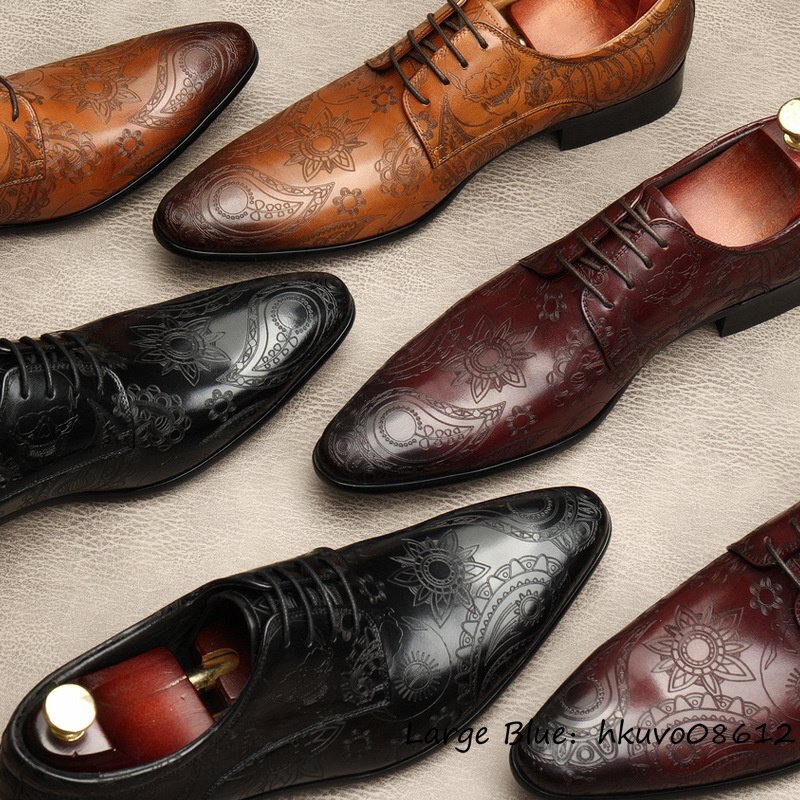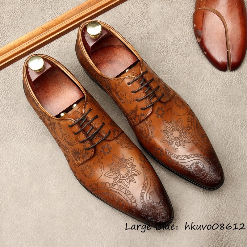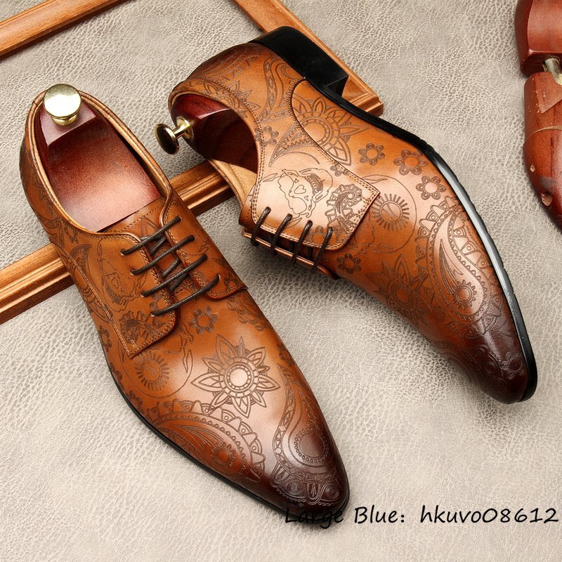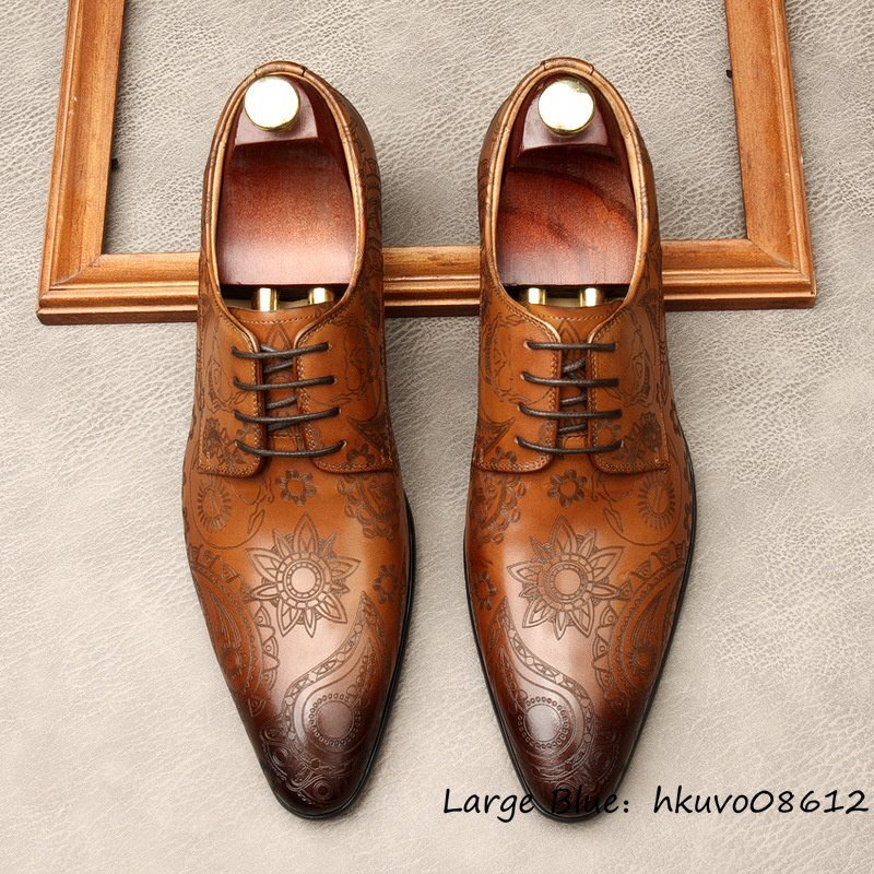 定価9万超★最高級 ビジネスシューズ 本革 レザーシューズ 超希少 職人手作り 総柄 牛革 紳士靴 メンズ フォーマル 革靴 ブラウン 27.5cm