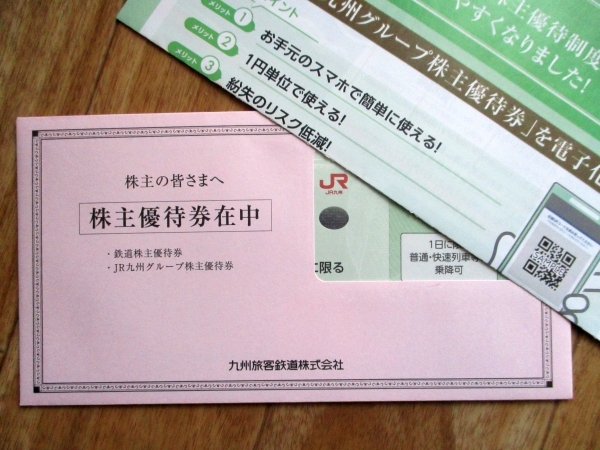 ・ 鉄道株主優待券(1日乗車券) x 1枚