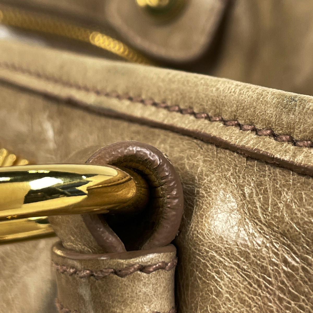 | 《全体》型崩れ、生活臭、スレ、キズ、シワ、汚れ、浮き 《ハンドル、ショルダーストラップ》へたれ、ひび割れ 《金具》小キズ、くすみ 《ストラップ根元》ひび割れ |