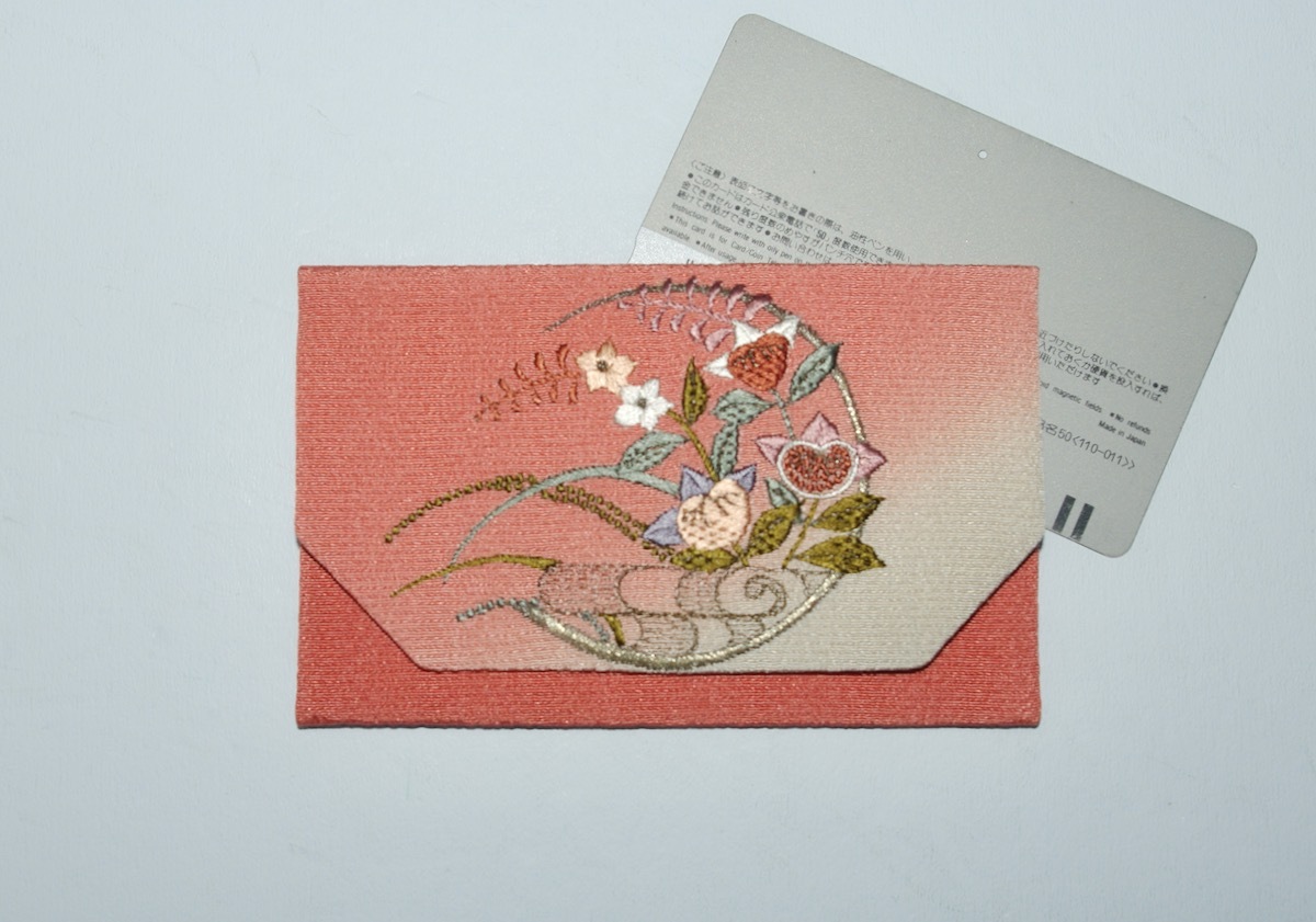 [佳]135)即決(オマケ付き)正絹名刺入れ サーモンピンクに花丸文 カードケース 保険証 診察券 敬老パス入 ハンドメイド 着物リメイク