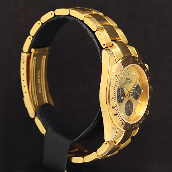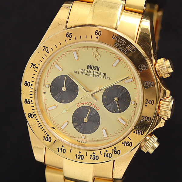 1円 稼働 ムスク ME-2020 QZ クロノグラフ ゴールド文字盤 メンズ腕時計 2853100 11ERY KMT