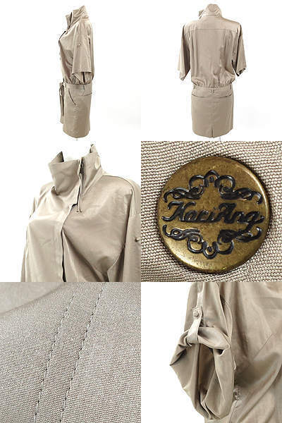 | デザイン性の高いワンピース☆スタイリッシュな着こなしに☆ サテンの光沢感が美しくサラサラとした肌触りが心地よい一品。 フロントのジップは比翼仕立てですっきりと。 ウエストのリボンを絞ることができます。気分によってシルエットを かえることができますよ。お袖もロールアップできます。 経年による色褪せが少し見られます。その他の状態は良好です。 着丈約90cm 裄丈約49cm バスト約106cm ウエスト約84cm ヒップ約92cm 【サイズ】:(S) 【素 材】:(トリアセテート57%・ポリエステル43%(裏地ポリエステル100%)) 【 色 】:(カーキ) 【程 度】:(B) 12140401-005 499 033 | ||||