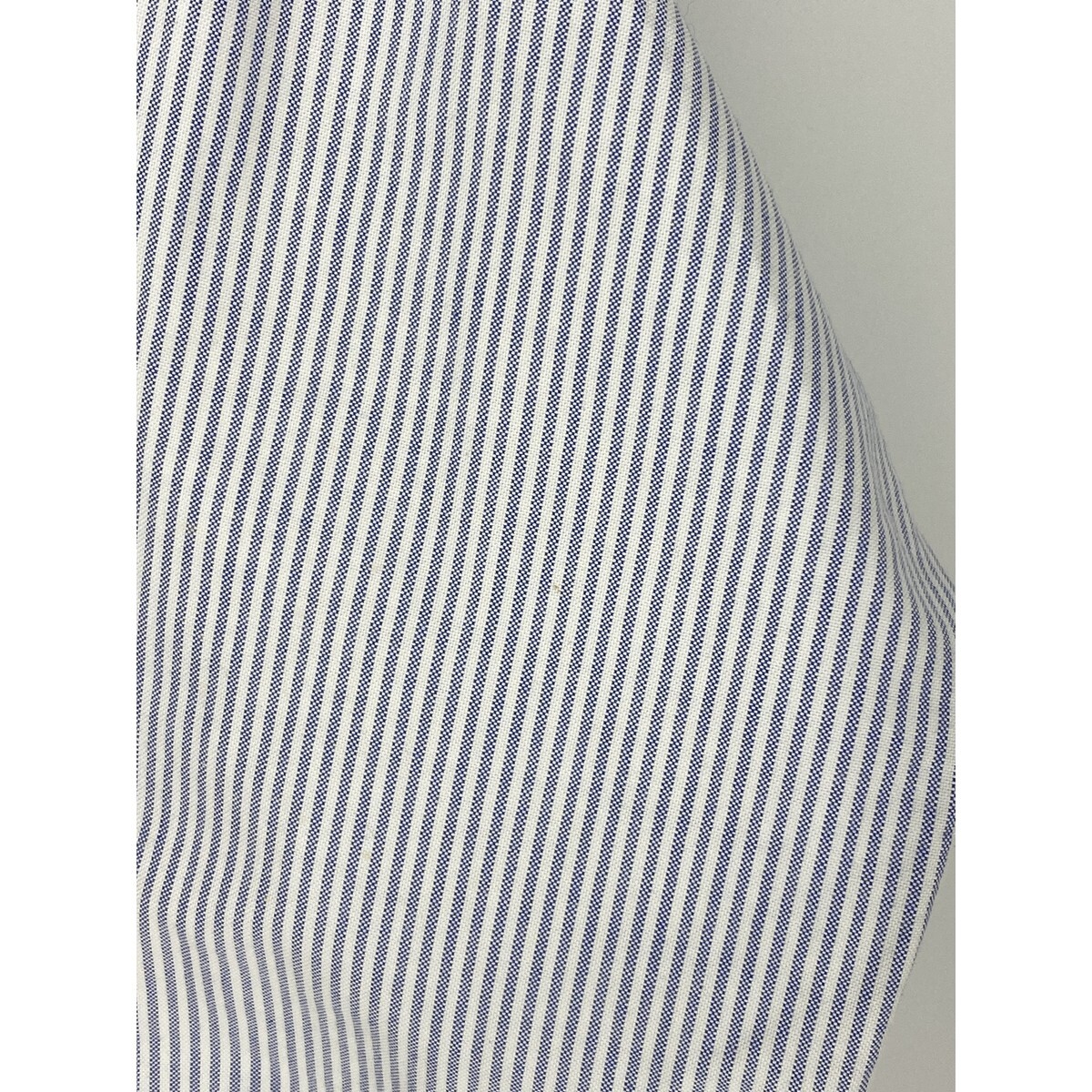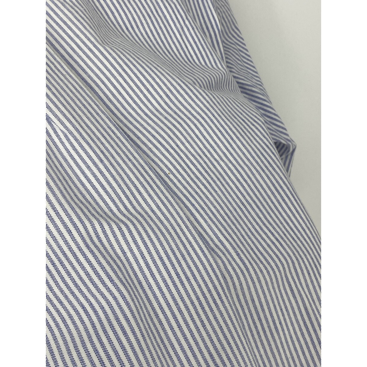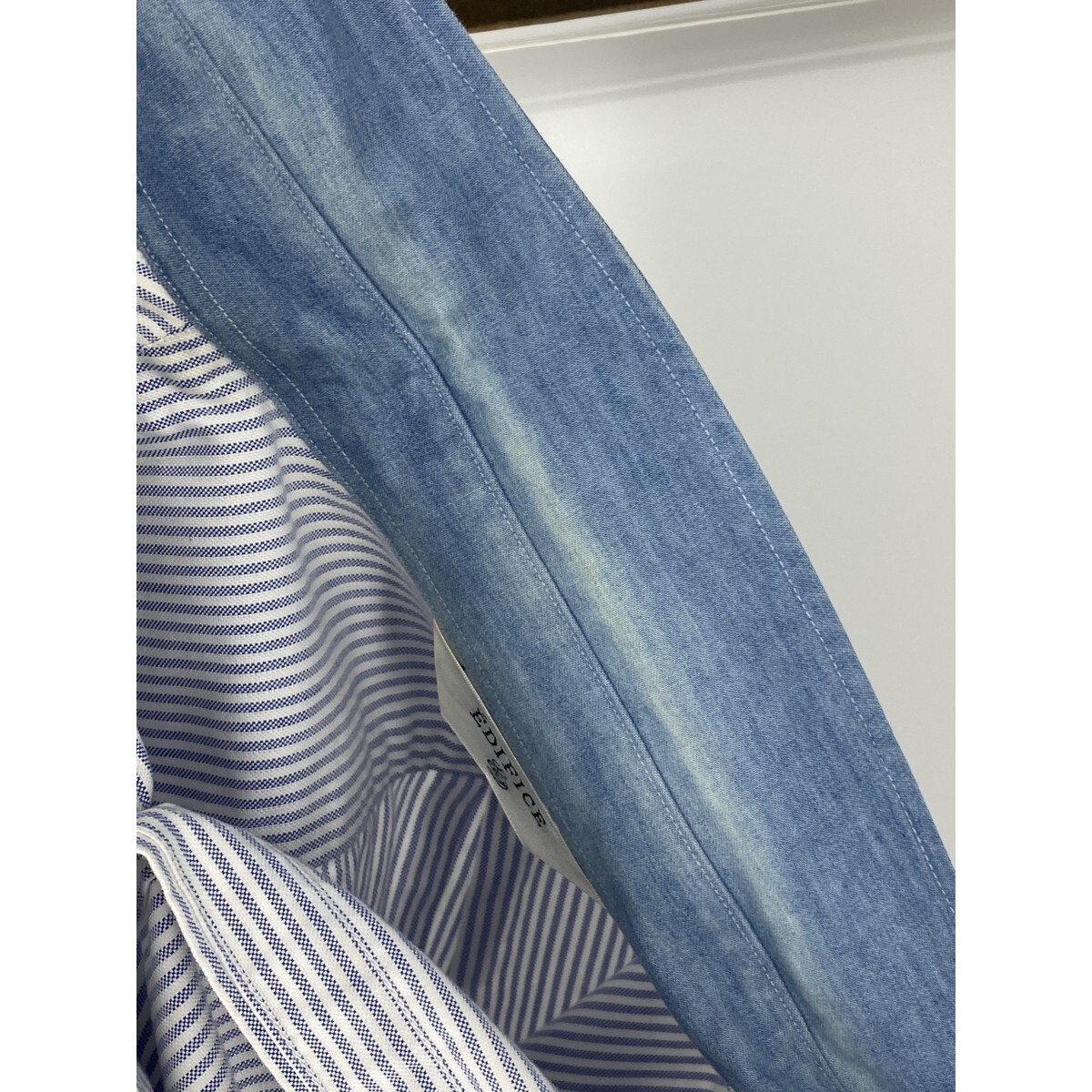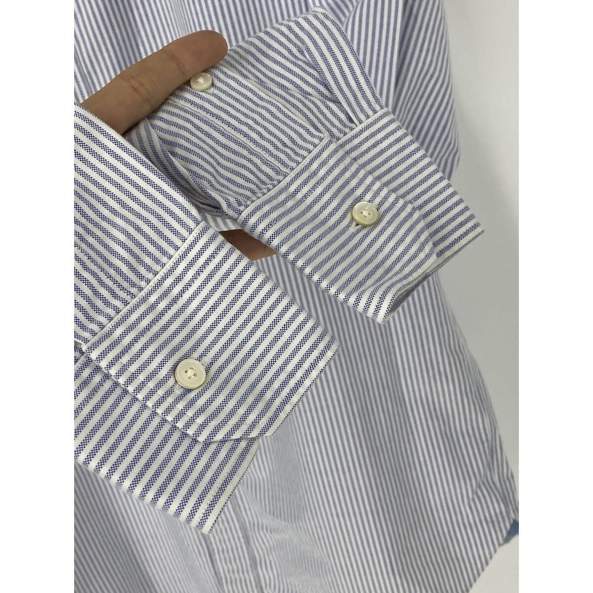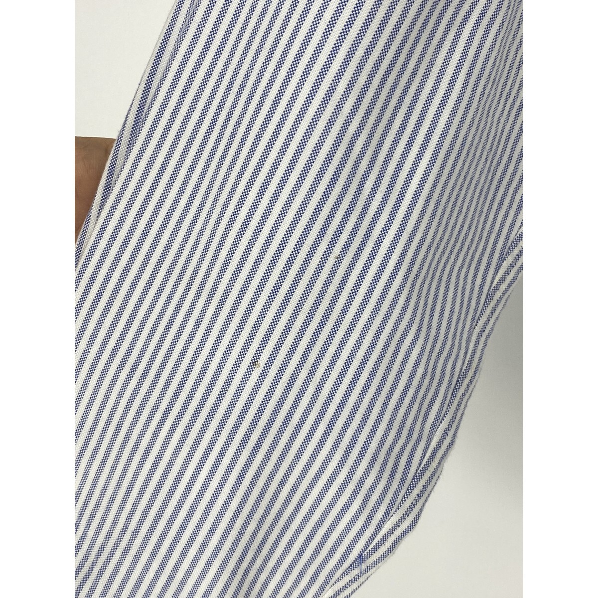 A8834/美品 春夏 EDIFICE エディフィス コットン 長袖 ストライプ ラウンドカラー ドレス カジュアル シャツ 48 L程 青 日本製 メンズ
