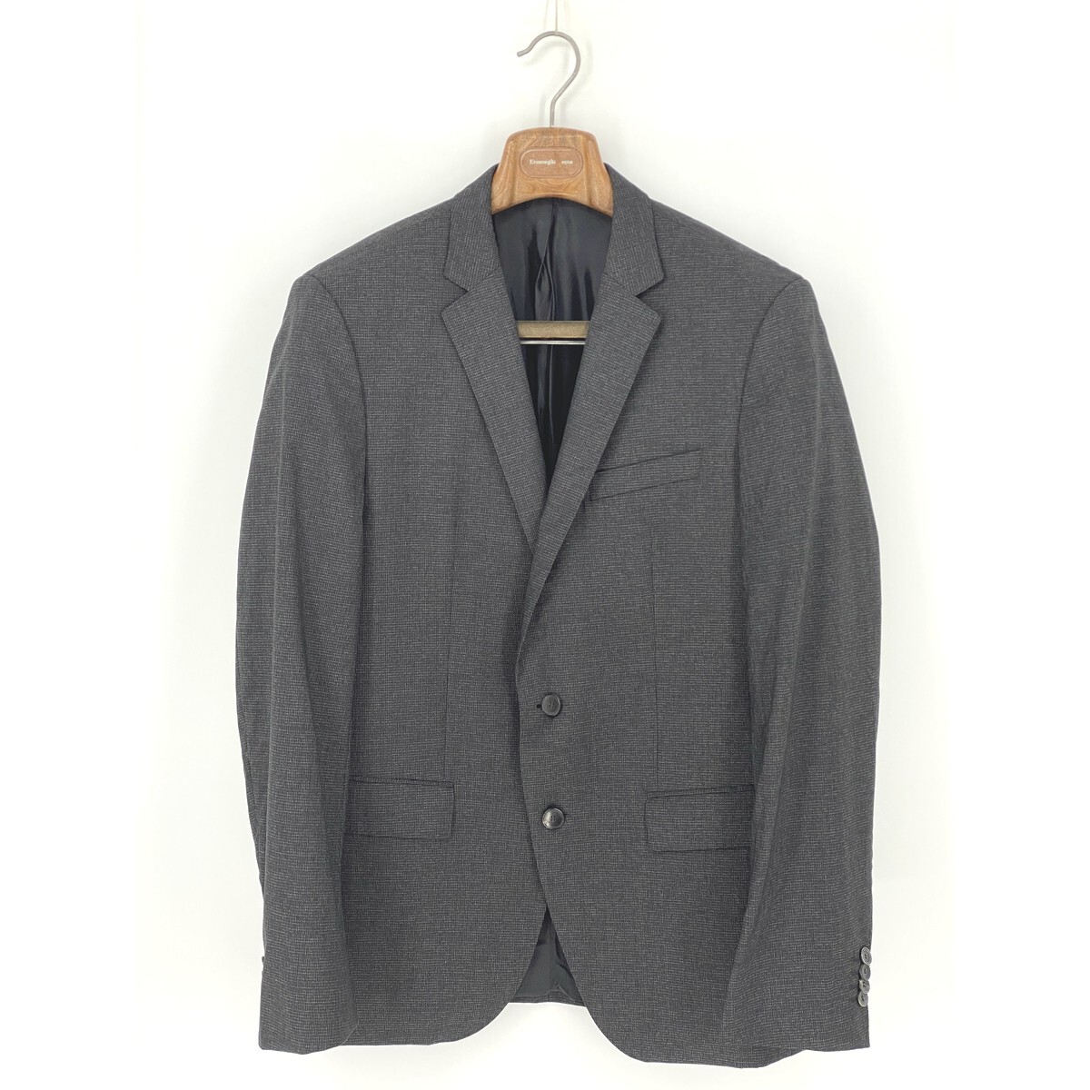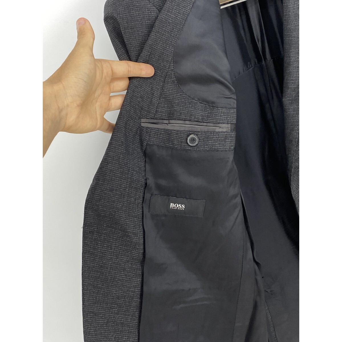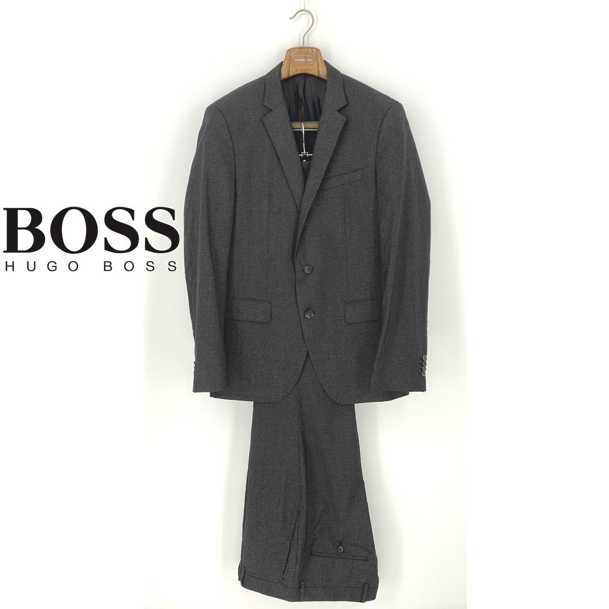B0227/訳あり 極美品 HUGO BOSS ヒューゴボス ウール 総柄 チェック スーツ セットアップ シングル2Bジャケット 50 XL 黒 メンズ ビジネス