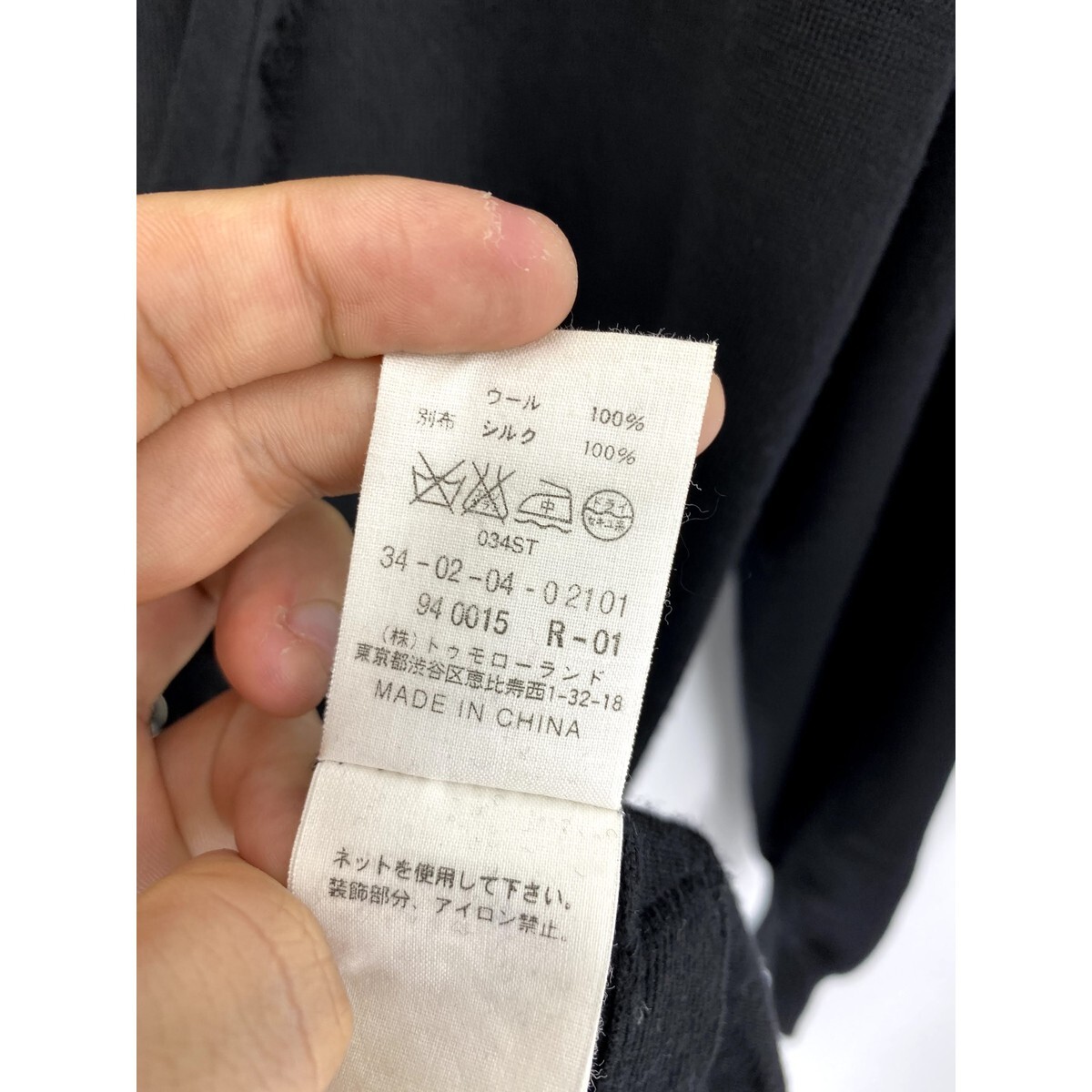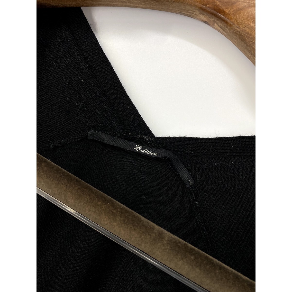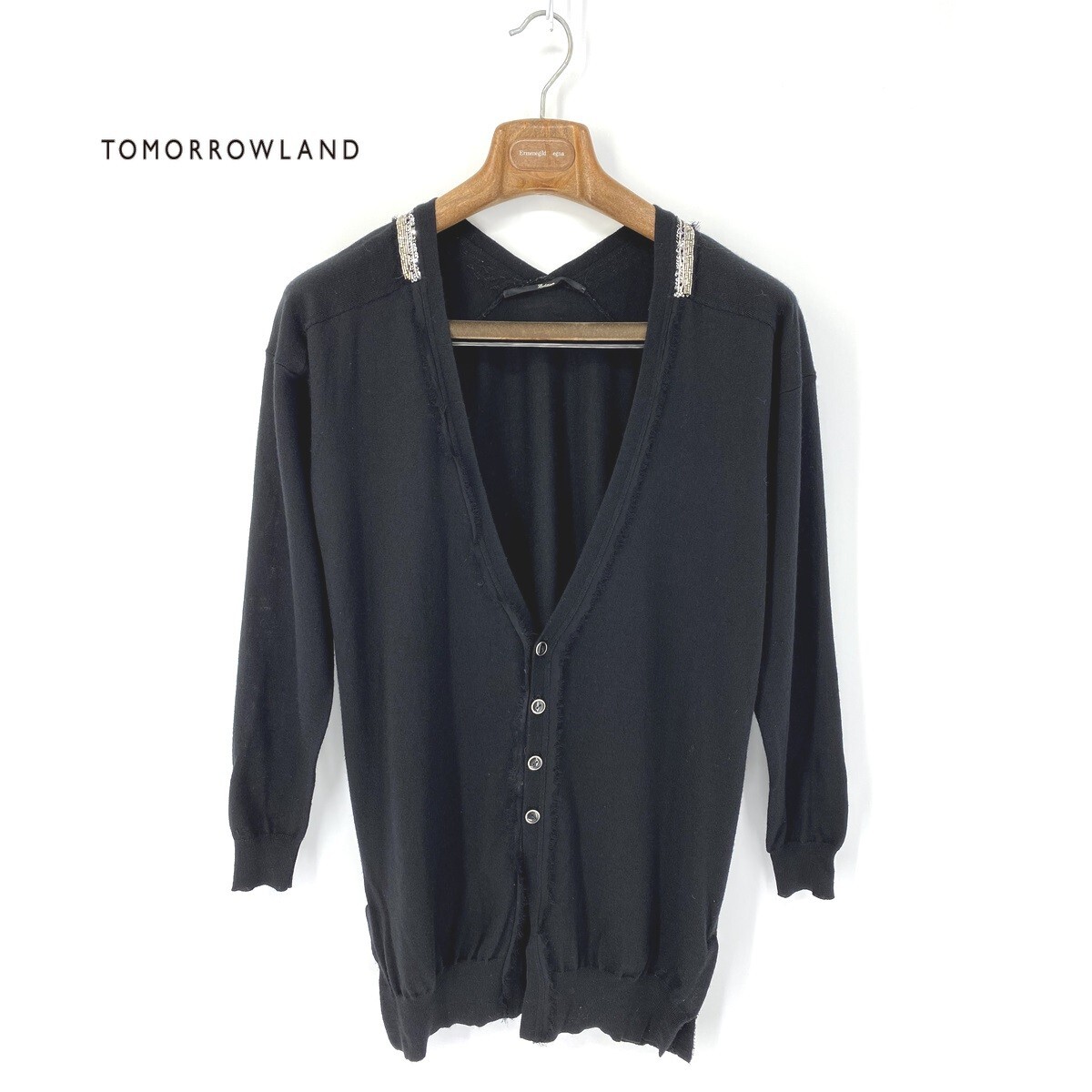 A6425/美品 春夏 Edition TOMORROWLAND トゥモローランド ウール シルク ビジュー刺繍 フリル Vネック ニット カーディガン38黒/レディース