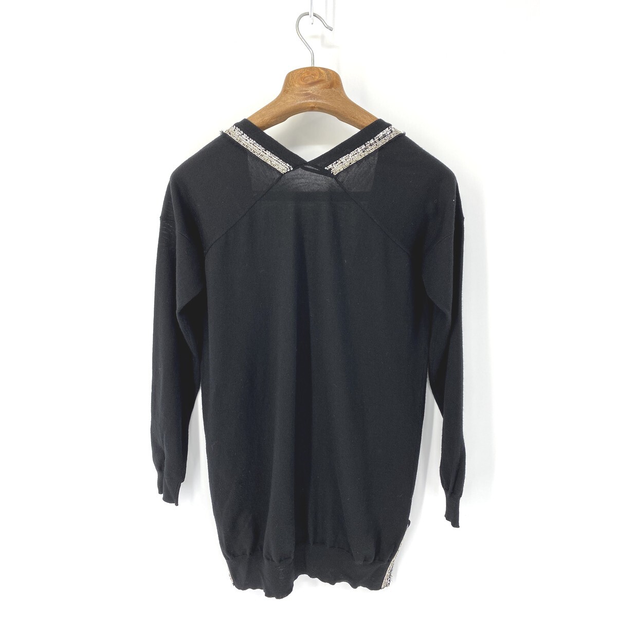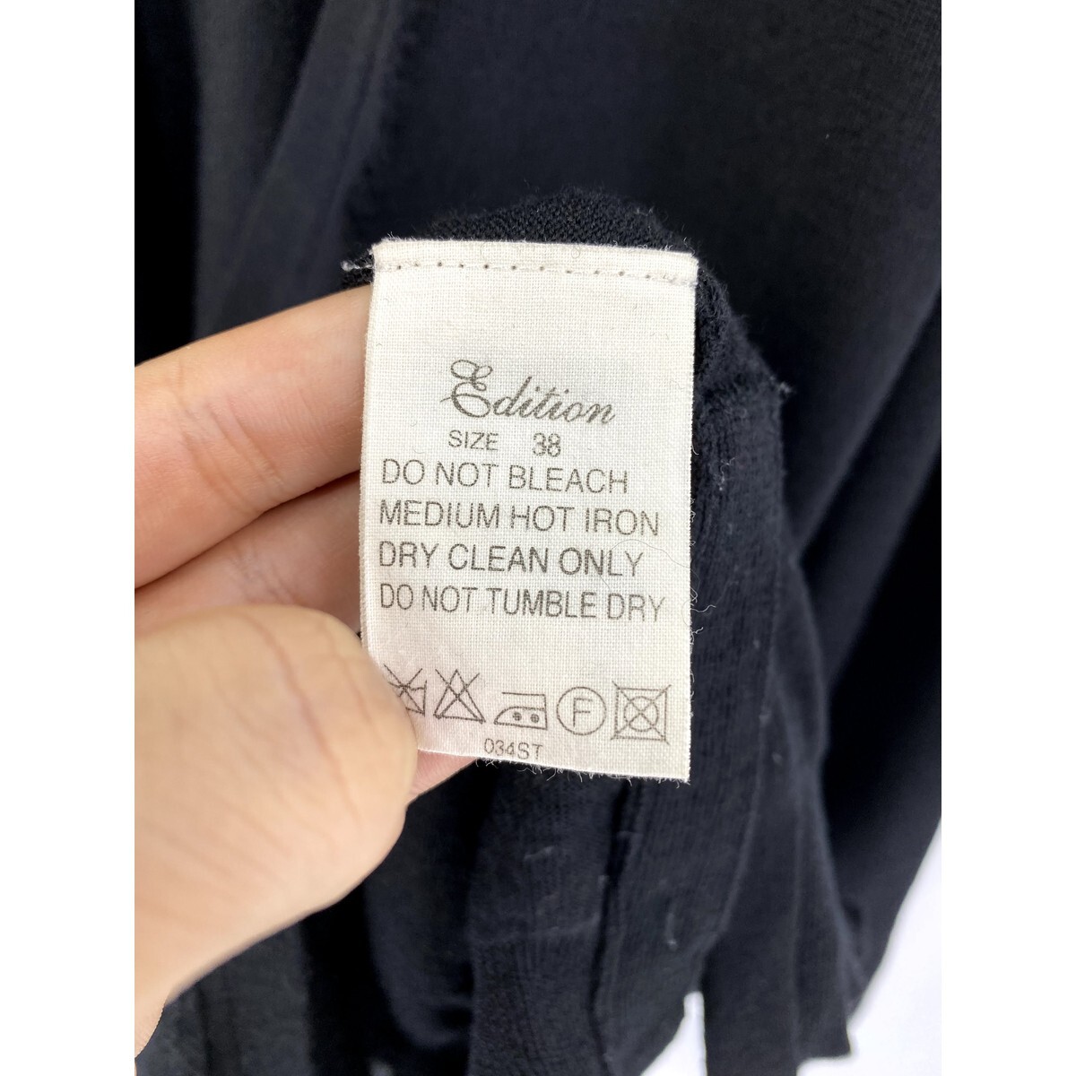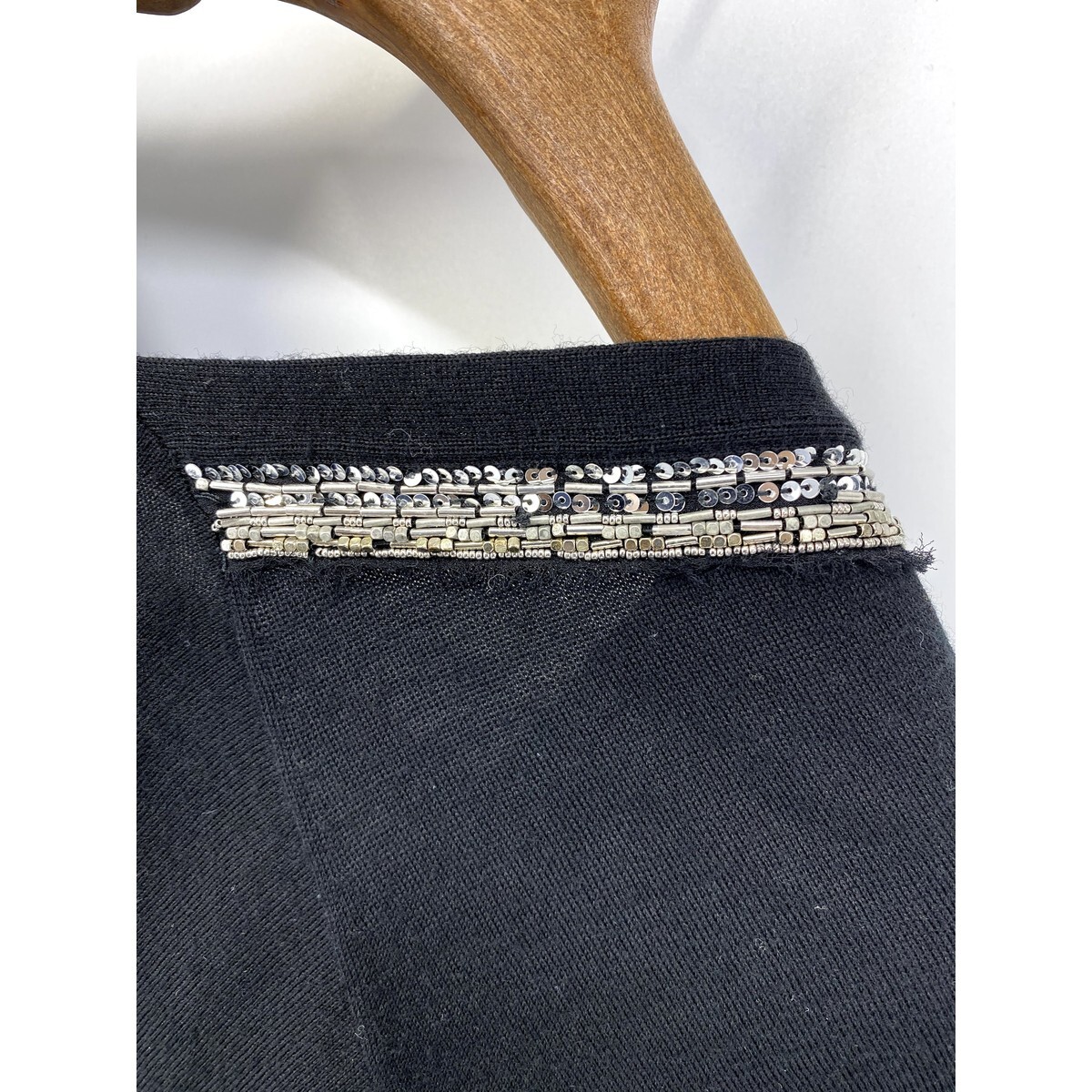 A6425/美品 春夏 Edition TOMORROWLAND トゥモローランド ウール シルク ビジュー刺繍 フリル Vネック ニット カーディガン38黒/レディース