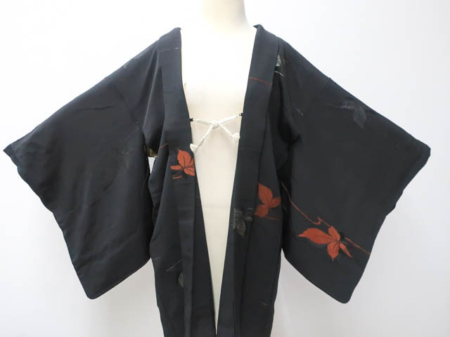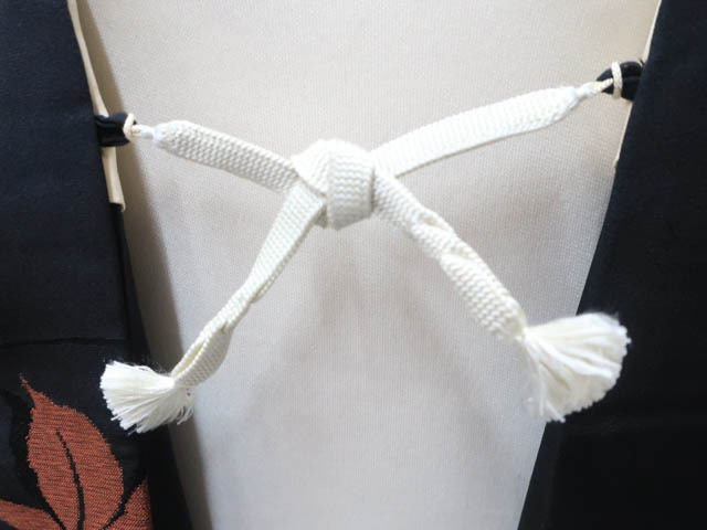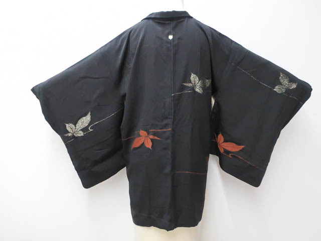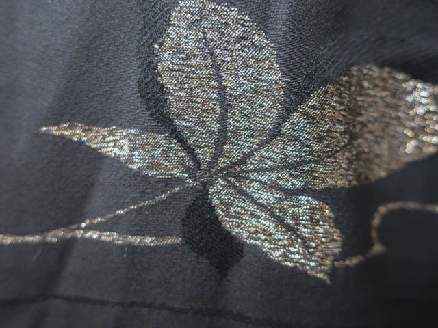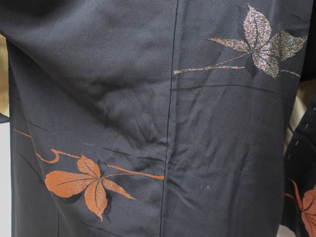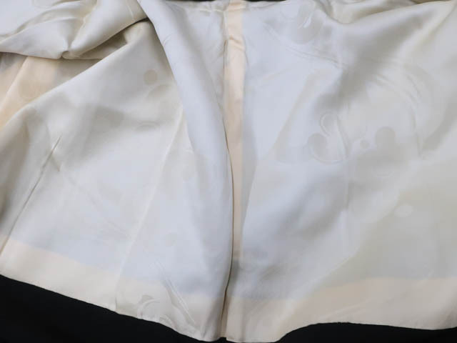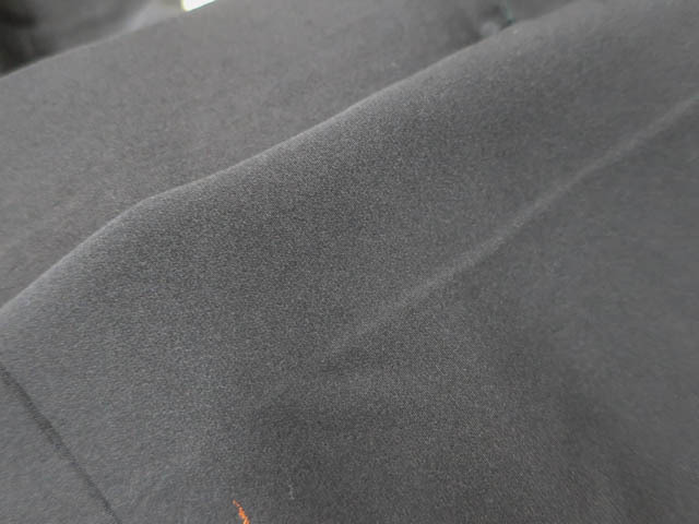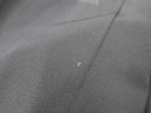 リサイクル商品のため、返しに汚れ、左衿横・右背に薄汚れがございますが着用可能なお品です。 地色は黒です。 1枚目の画像が近いお色かと思われます。 素材は正絹です。 |