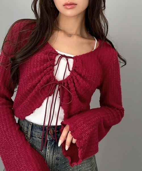 参考商品名:【mily bilet】高見えロゴプレートがキラリ。前後2WAYリボンデザインニットカーディガン