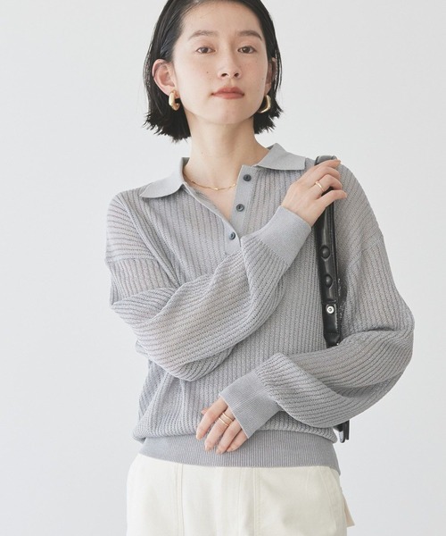 「AMERICAN HOLIC」 長袖ポロシャツ M ライトグレー レディース