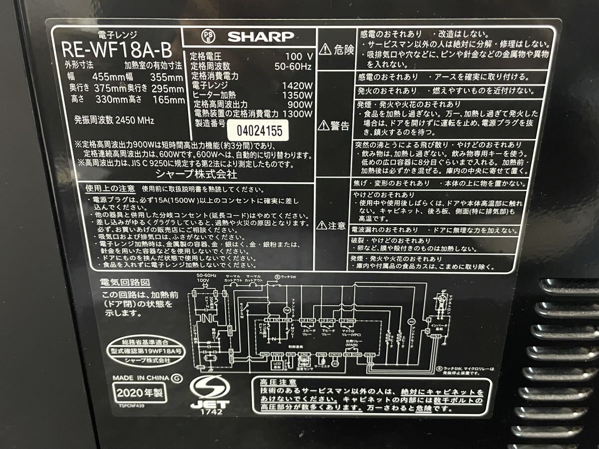 今回は、SHARP オーブンレンジ RE-WF18A-B 2020年製となります。