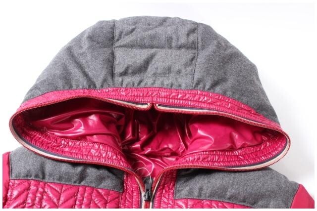 デュベティカ DUVETICA Cloto Zipped ジャケット ダウン フード 異素材 ウール混 42 赤 レッド ako0514 レディース