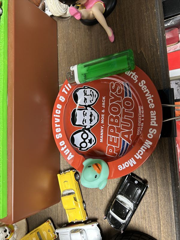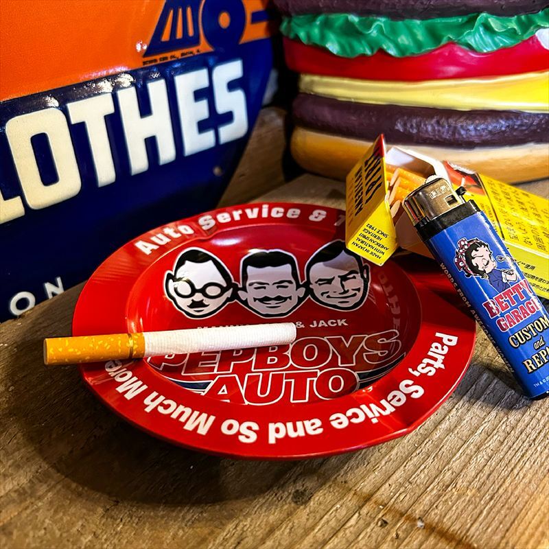 【212613】アメリカのモーターカルチャーを象徴するデザインが特徴的軽量なブリキ素材で扱いやすく、置くだけでレトロアメリカンなテイストに縁にはタバコを置けるノッチ付きで、実用性もバッチリですデスクやガレージ、ダイナー風インテリアにもおすすめですサイズ φ160×H15mm素材 ブリキ