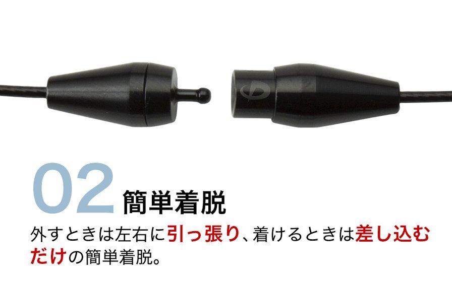留め具部分は左右に引っ張って外し、着けるときは差し込むだけの簡単着脱。