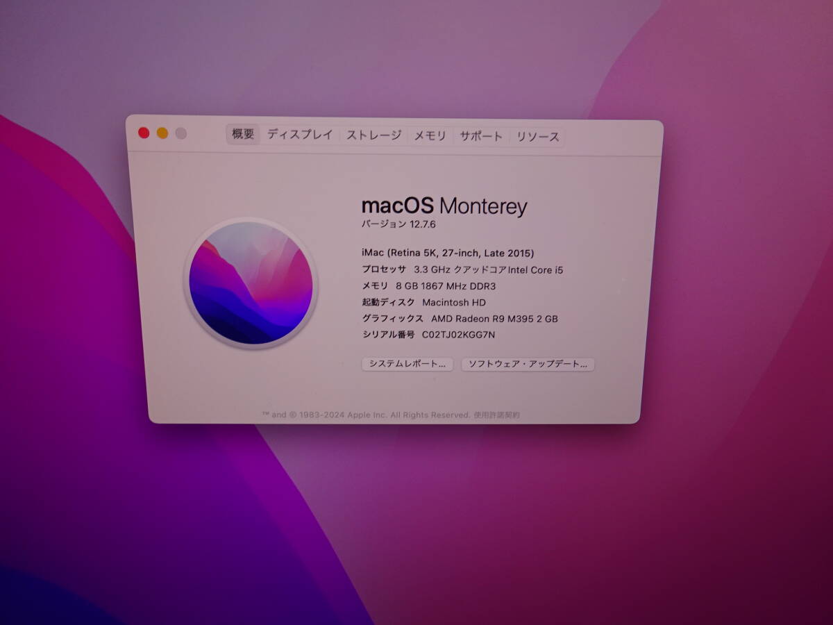 iMac Retina 5K, 27-inch , Late2015 /Monterey/Core i5/メモリ8GB/SSD128GB/HDD2TB/付属品/動作品 (2511192)