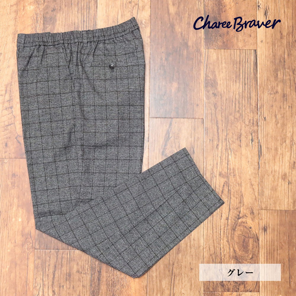 1円/秋冬/Charee Braver/3(L)サイズ/イージーパンツ 日本製 チェック リラックス チャーリーブレイバー 新品/グレー/ma289/
