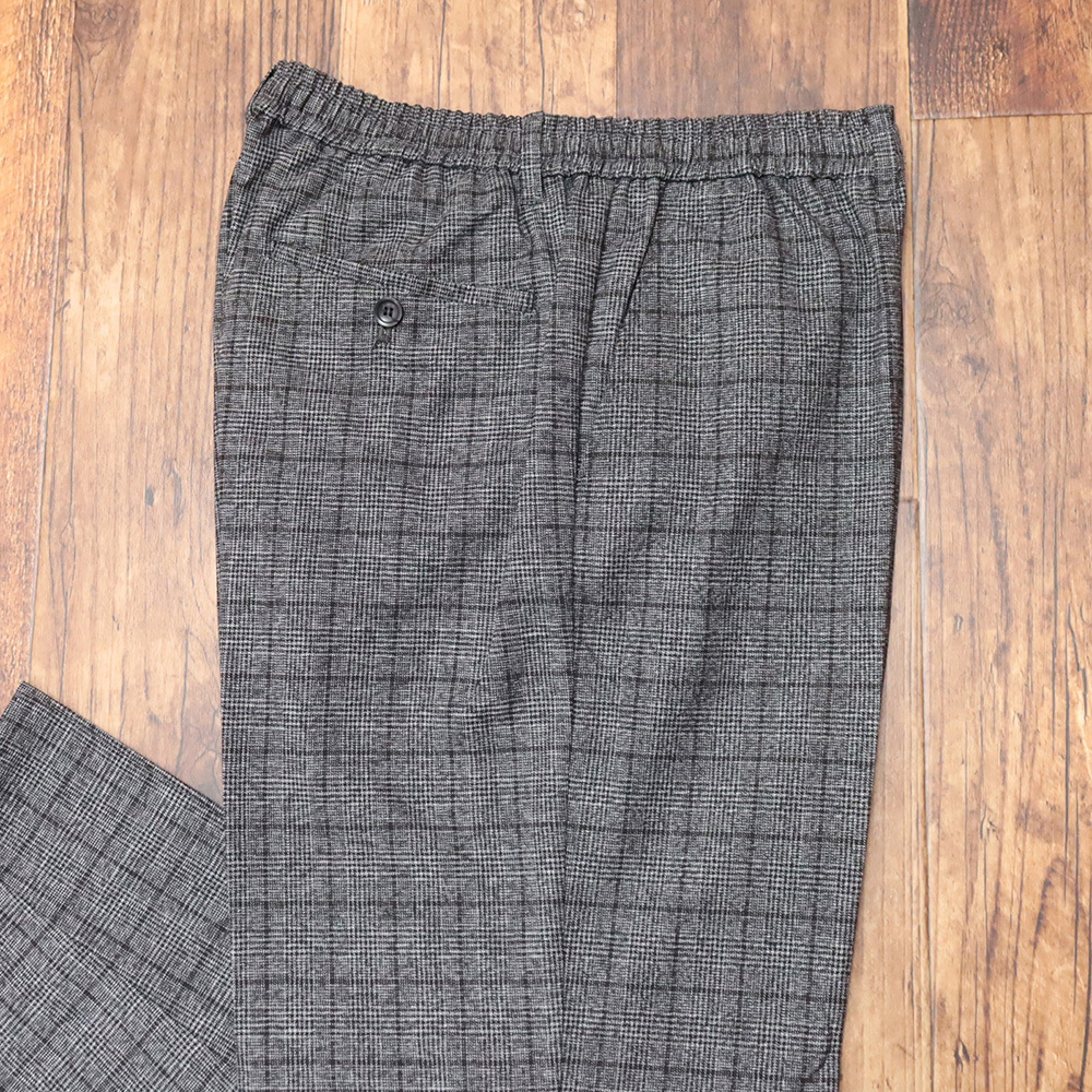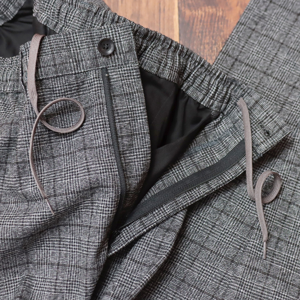 軽快な穿き心地と存在感を兼ね備えたチェック柄イージーパンツ。ウエストはゴムとドローストリング仕様で、リラックスしたフィット感を実現しています。