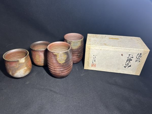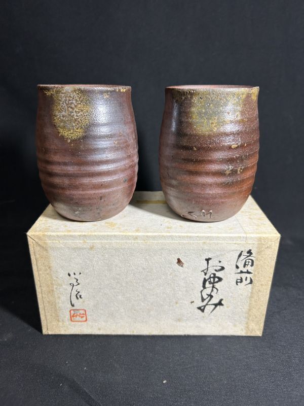 未使用保管品 煎茶道具 湯呑み 在銘 松本篤治 まとめて2点 陶器 旧家整理品になります。