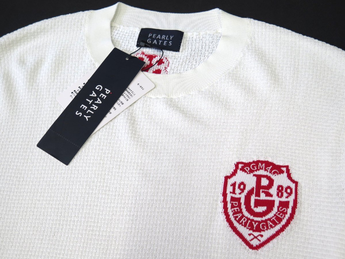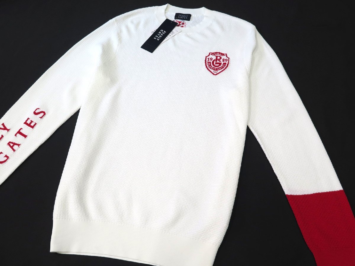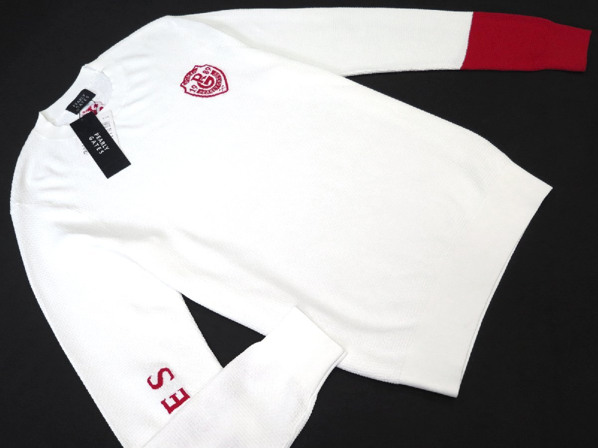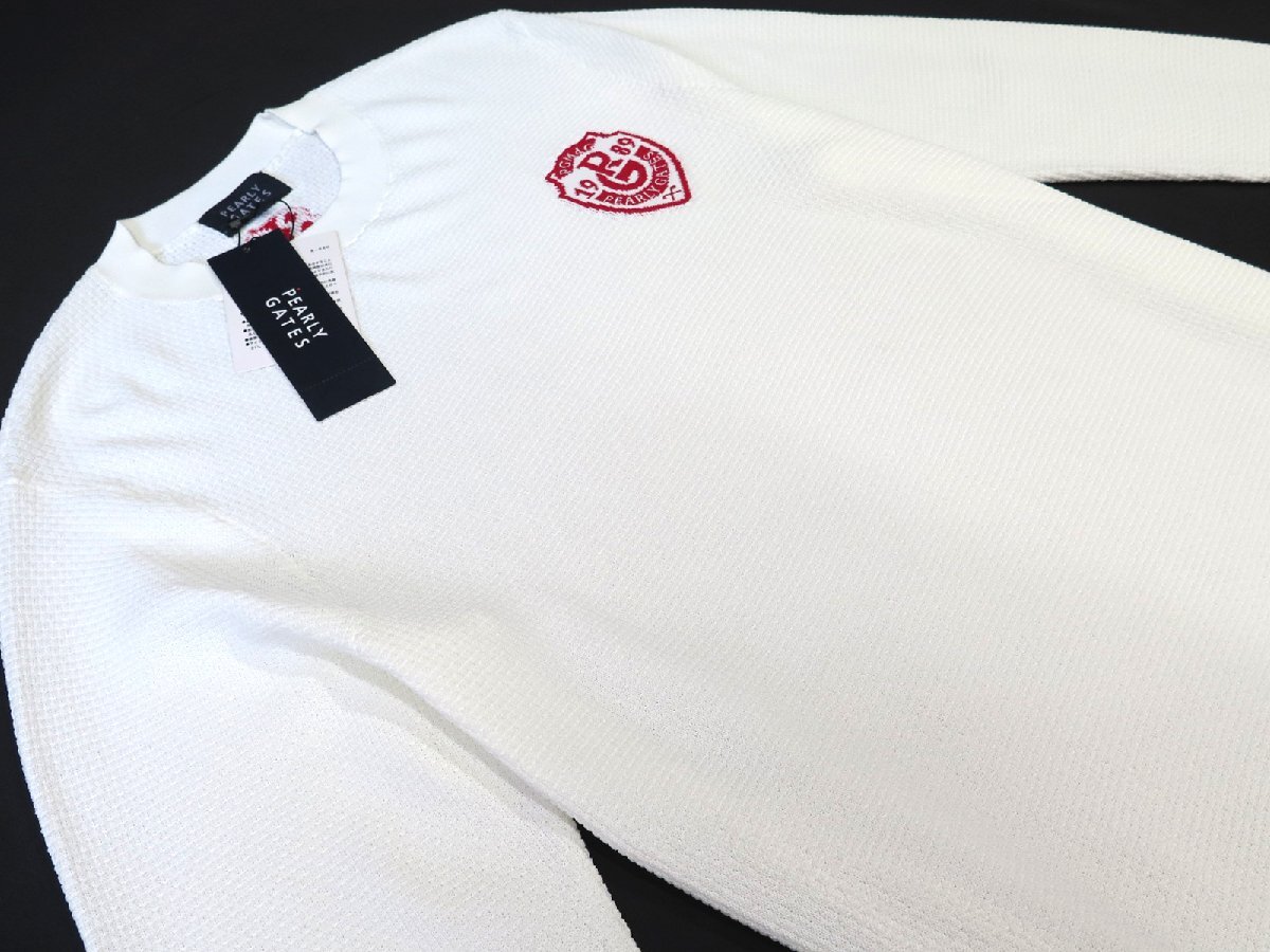 G699● PEARLY GATES パーリーゲイツ ●新品 【吸水速乾】 メンズ ドライタッチ クルーネックニットプルオーバー ホワイト/L 定価33000円