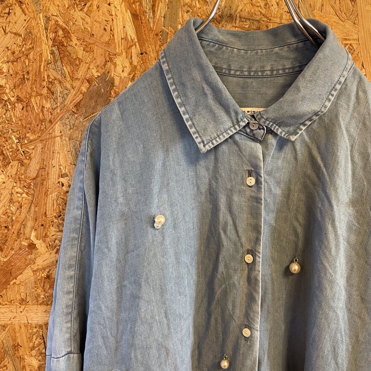 KWT7093 ZARA WOMAN デニムシャツ ブルー レディース 28 ポス