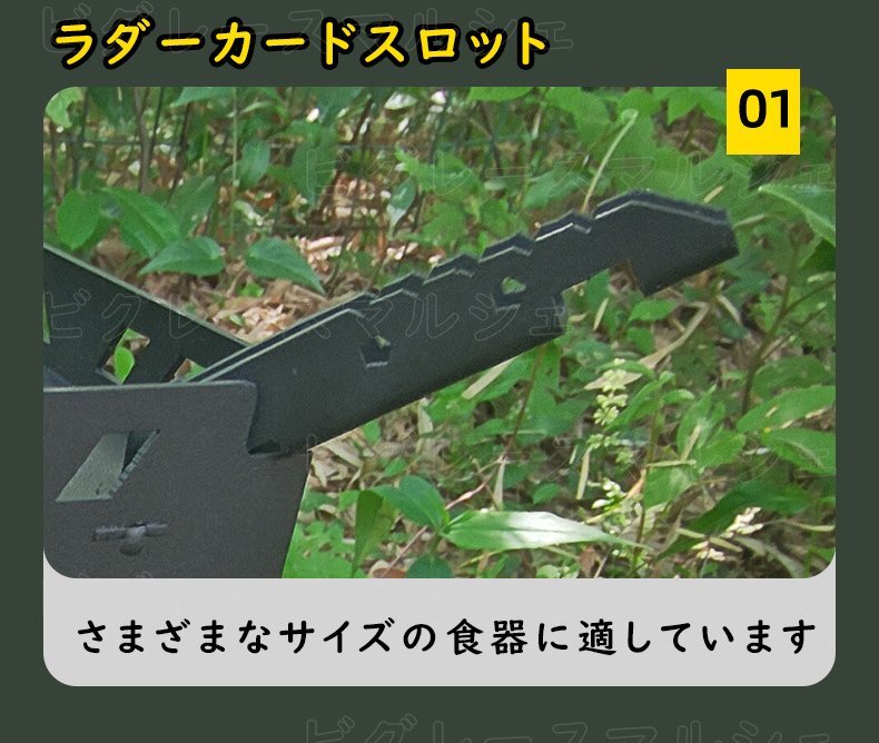 折りたたみ台形カードスロット、ポット、ケトル、ティーポット、その他のさまざまなサイズの調理器具に適しています。