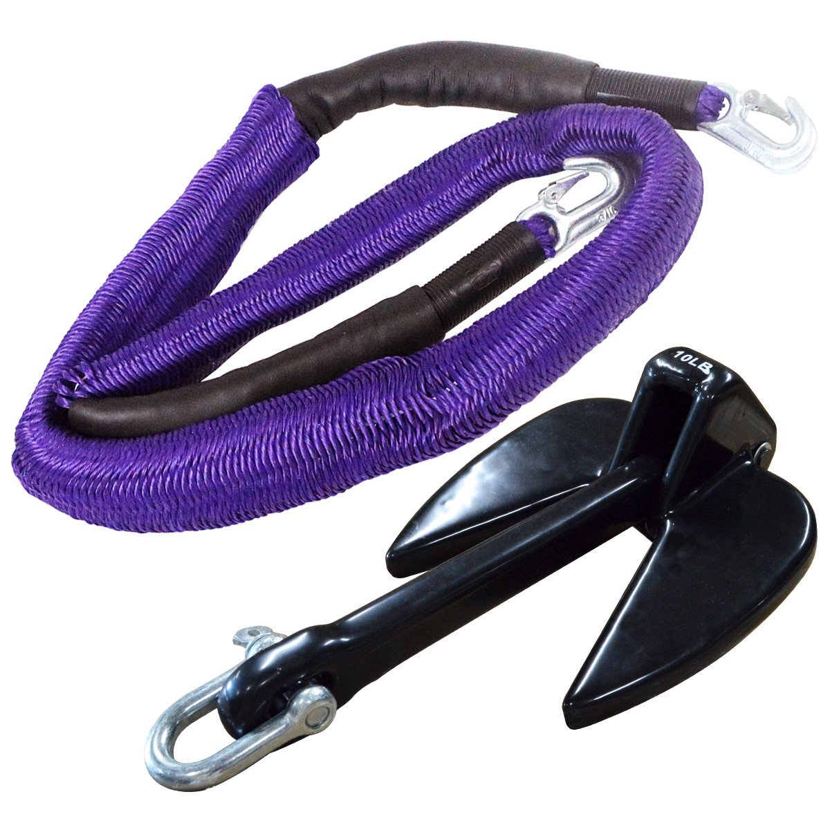 『伸縮ロープ/アンカーセット』爪型 アンカー 10LBS 4.5kg 黒 ブラック 6M フロート のびのび アンカー ロープ 紫