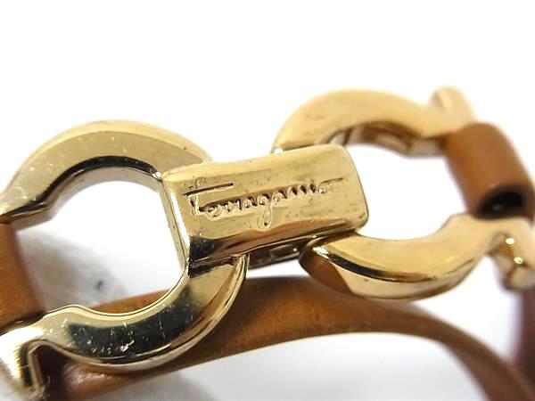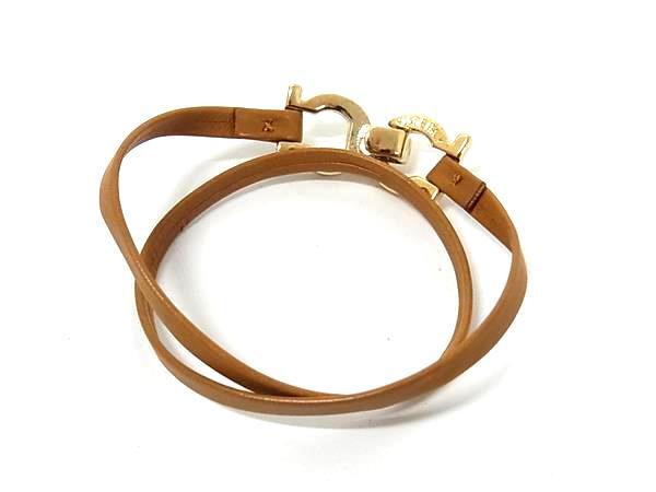 1円 ■美品■ Salvatore Ferragamo フェラガモ ダブルガンチーニ レザー 2連 ブレスレット チョーカー アクセサリー ブラウン系 GD0187