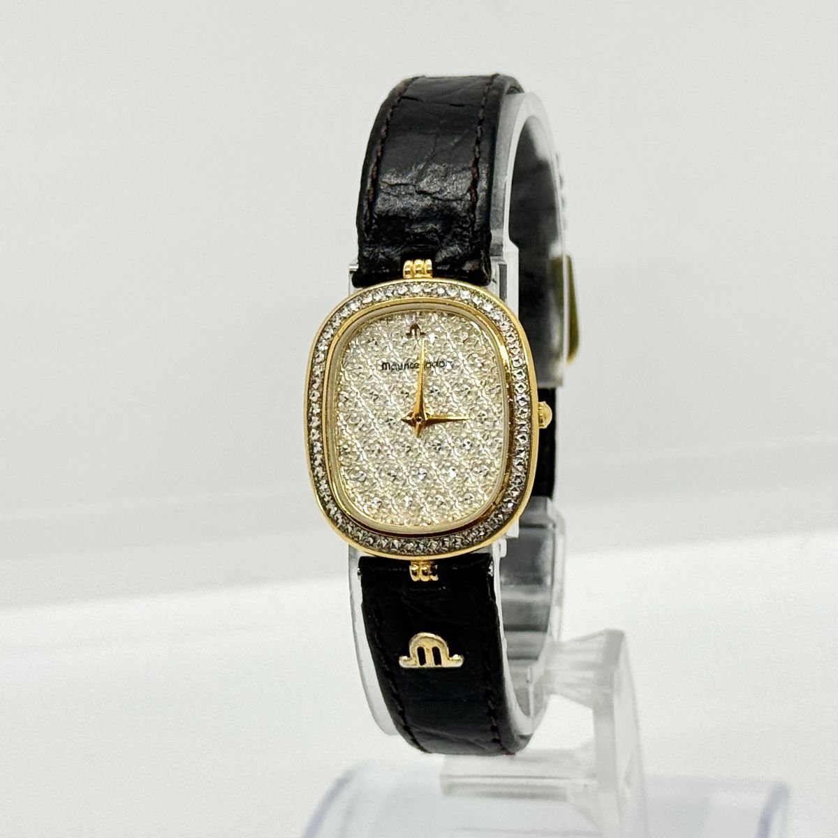 T9160 希少 MAURICE LACROIX モーリスラクロア 32151 クォーツ 石付ベゼル ゴールドカラー レディース 腕時計