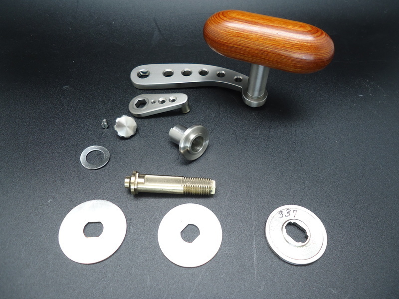 お手持ちのリール(トーナメント石鯛)を、スター開発社製ハンドルドラグ(ハンドル6mm)に交換します