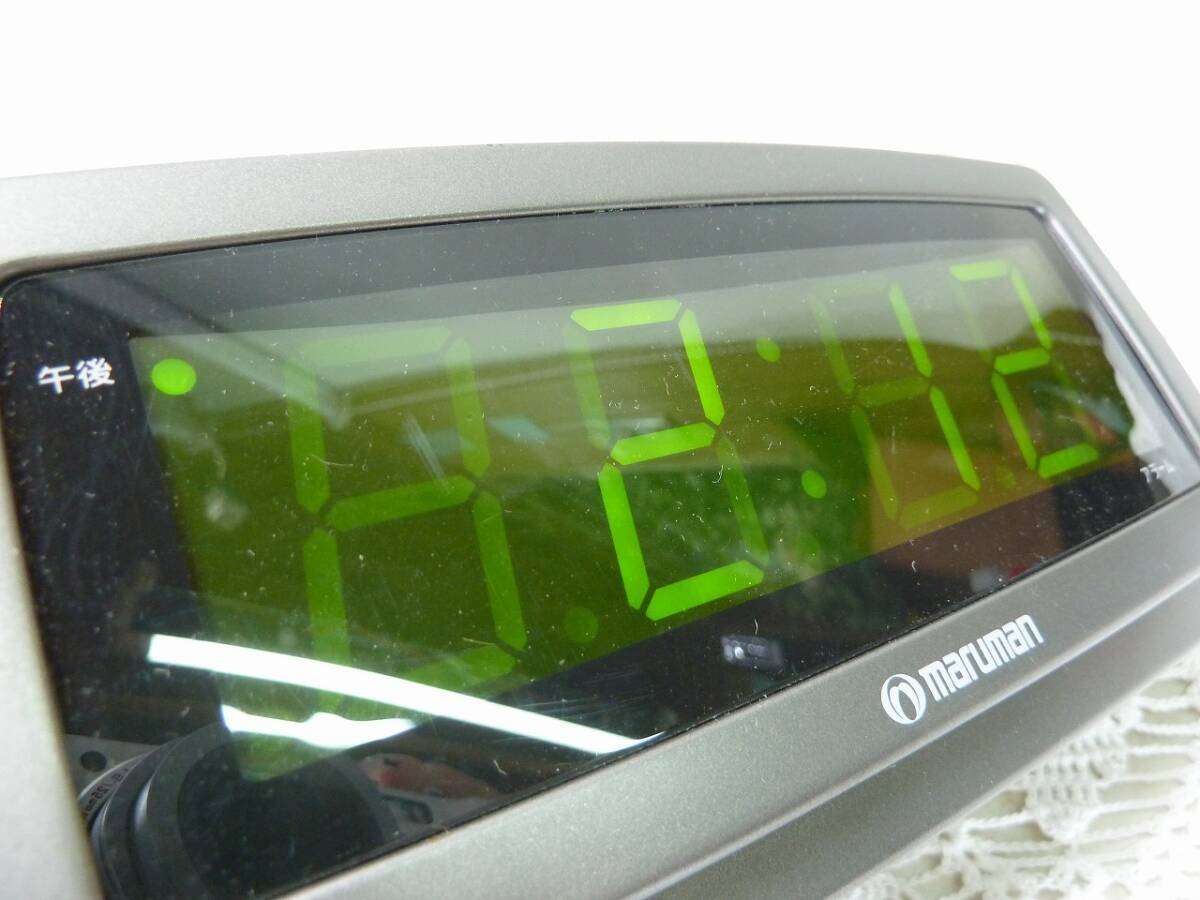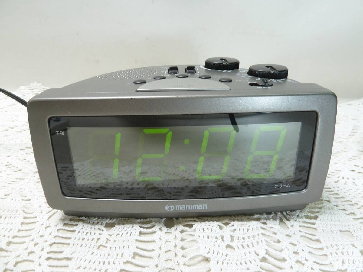@マルマン ラジオオクロック AR07 緑LED時計表示 デジタル時計 AM/FM 目覚ましスヌーズ機能 パワーバックアップ方式 グレー 通電OK レトロ