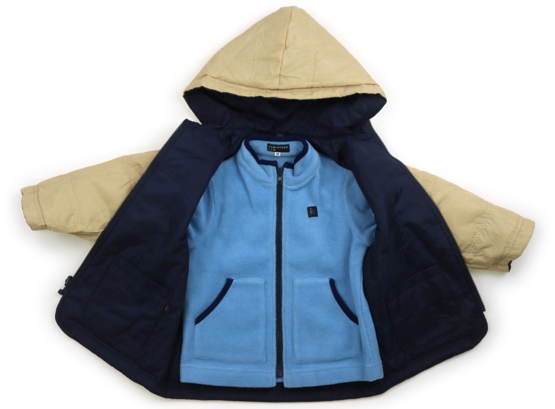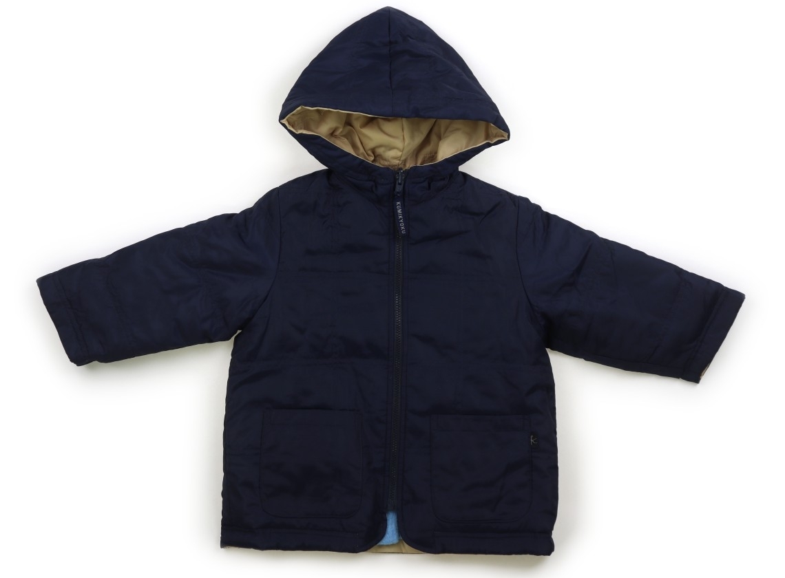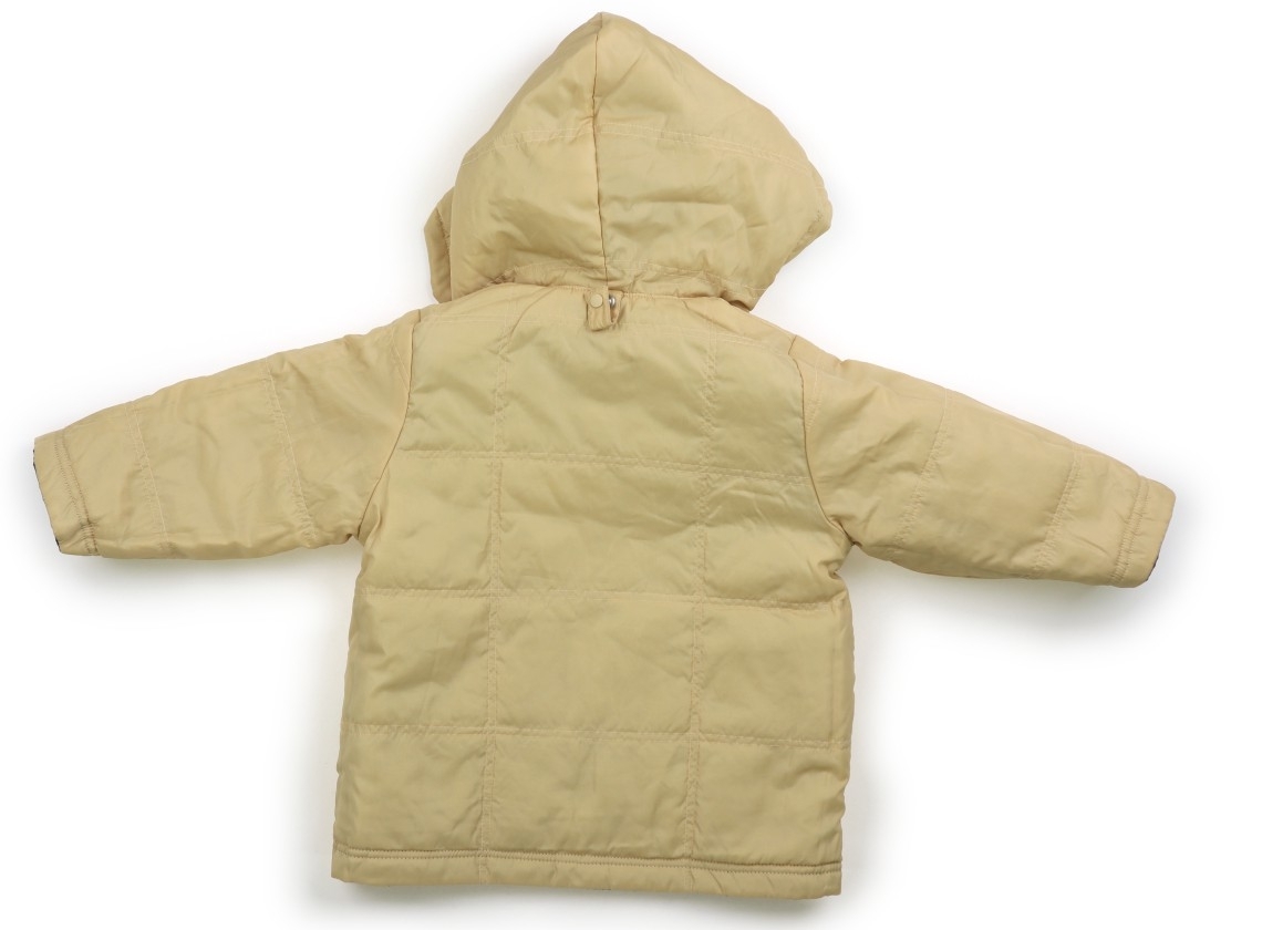 ポリエステル素材。中綿入り。フードは縫い付けです。リバーシブル使用。フリース素材の長袖ライナー付き。ライナーに薄いシミがいくつか見られます。
