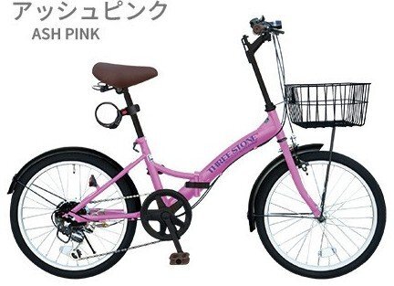 ブラックフェンダーツートン仕様 20インチ折りたたみ自転車 P-008N シマノ 6段変速 アッシュピンク【本州・四国 送料無料】