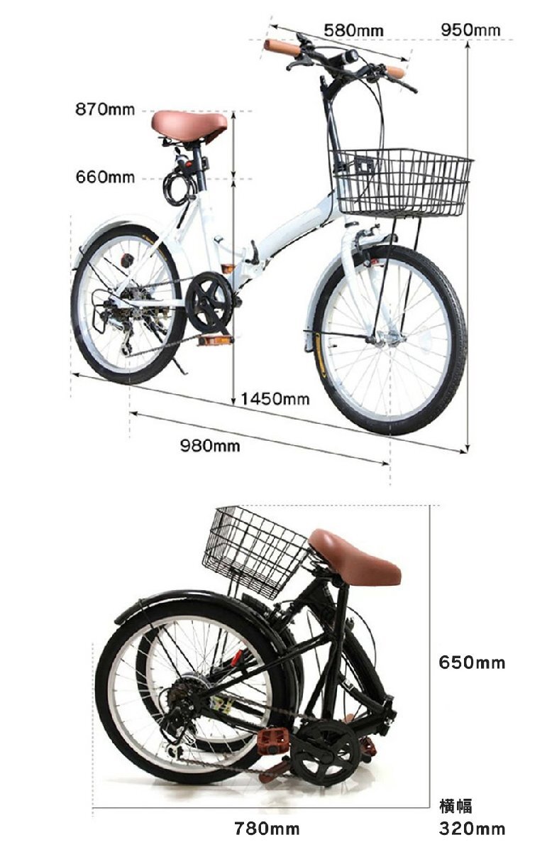 折りたたみ自転車 20インチ P-008N シマノ 6段変速