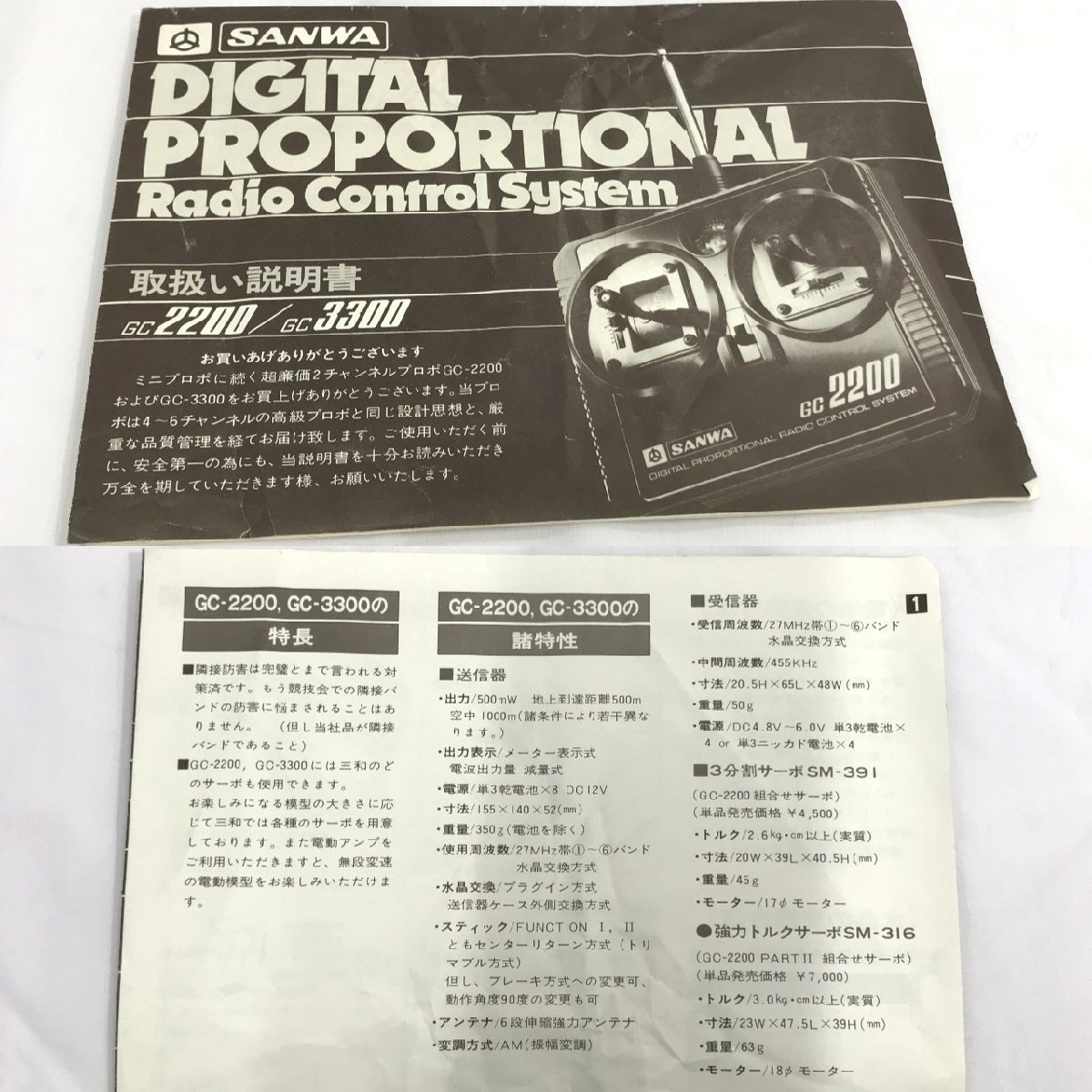 SANWA プロポ ラジコン GC2200 2チャンネル 送信器 受信器 未使用パーツあり 外箱 取扱い説明書あり 通電・動作未確認 現状品【道楽札幌】