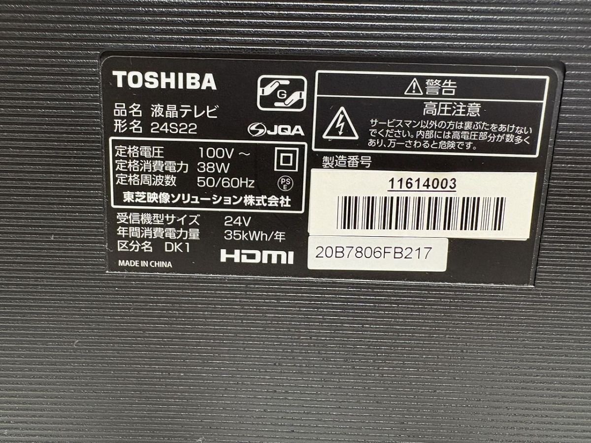 ■商品名TOSHIBA 液晶テレビ24S22 2020年式■内容{サイズ(約)/(画像参照/素人採寸)}※長期保管の為汚れあり動作問題なし2020年式取り扱い説明書なし初期設定済み/HDMIあり/miniB-CASカード付き/ACケーブルありサイズタテ36㎝ヨコ57㎝奥行15㎝・現在スマートフォンでは文章の表示が異常になる場合がございます。不明点などございました際はご質問ください。・梱包サイズ、送料は下部の発送詳細欄に記載がございます。ご参照のほど宜しくお願い致します。■詳細・長期保管品。・状態→長期保管品のため汚れ有り・大きさは画像を参照ください。・新品同様をお求めの方は購入を御遠慮願います。・画像の物が全てになります。・画像を参照の上ご判断宜しくお願い致します。・専門知識が無い為詳しいことはわかりかねます。・長期保管で保管期間/購入日は不明の為、品質保証はできかねます。・ご理解ご了承いただける方のみのご入札をお願い致します。■同梱について複数落札商品の同梱についてはヤフオク機能の《まとめて取引》よりご依頼ください。なお、ヤフオクの規定により落札後72時間以内の商品が同梱の対象になります。また、評価が低い落札者様につきましても《まとめて取引》がご利用頂けません。詳しくは以下にて、宜しくお願い致します。【まとめて取引の手順】【まとめて取引の条件】・割れ物など壊れやすい物は、破損防止の観点から同梱はできませんが、落札後《まとめて取引》にてご対応いただけた場合は複数個口にて発送致します。送料は個別対応より割引になります。・個別取引にて同梱をご希望の場合は必ず送料連絡前に取引ナビにてご連絡いただけますようお願い申しあげます。